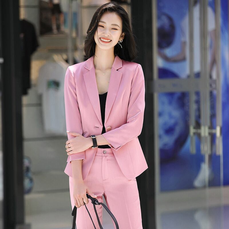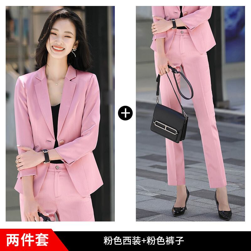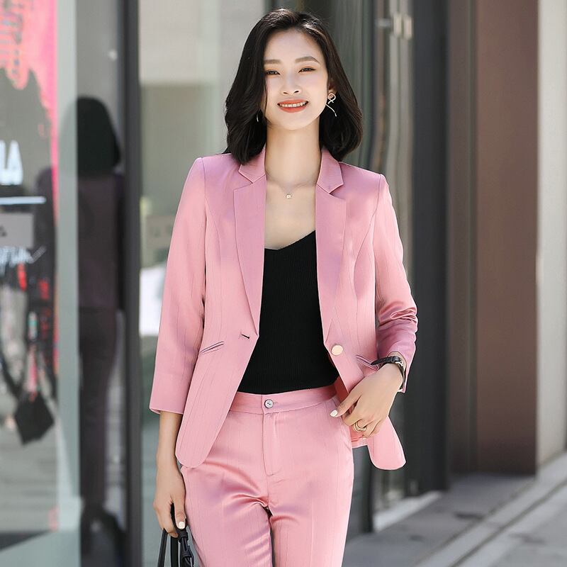 【新作】【送料無料】 フェイクアセテートピンクストライプスーツスーツ女性2020秋と冬の新しいプロの通勤女神ファンツーピーススーツ-アリババ オータム 秋物 ウィンター 冬物 ファー 12b396945026485