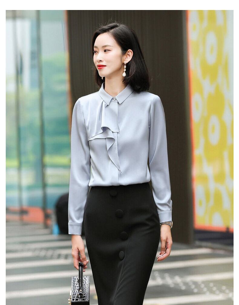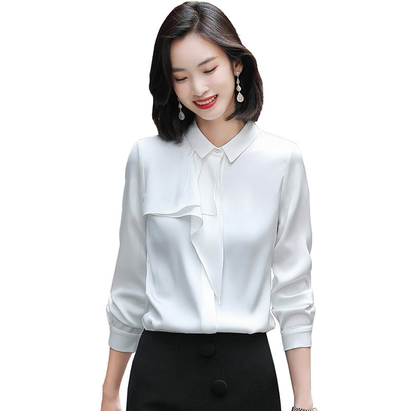 【新作】【送料無料】 女性用長袖シャツ、模造アセテートサテンデザイン、気質レースステッチトップ、2020年秋冬新婦人服-アリババ ロング オータム 秋物 ウィンター 冬物 12b371788599125