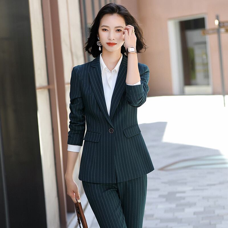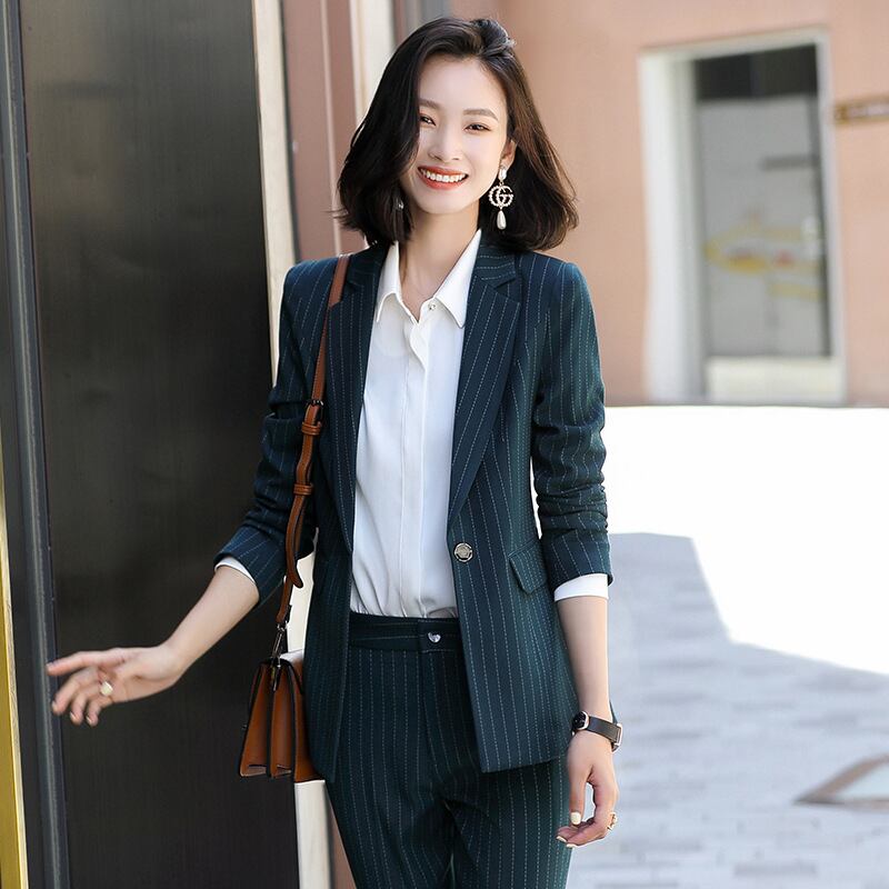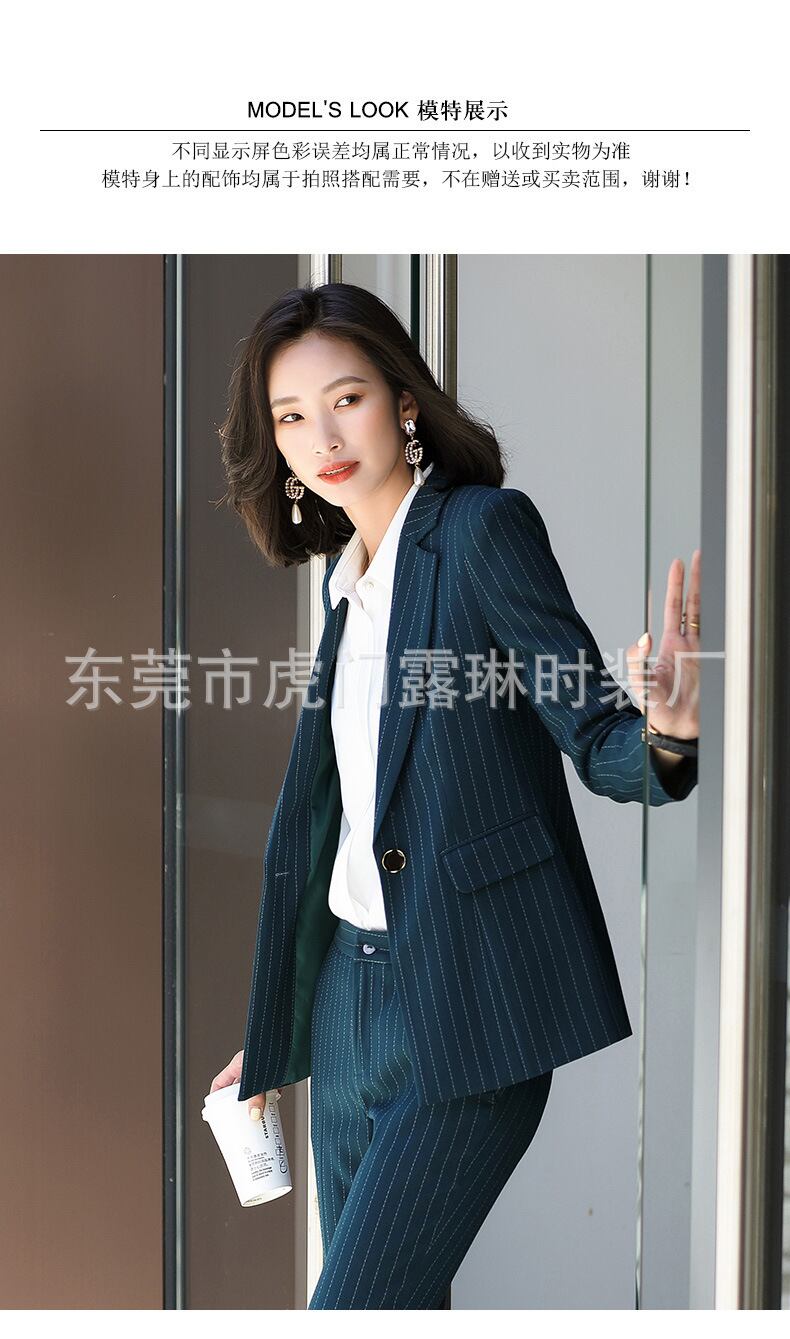 【新作】【送料無料】 2020年秋冬新緑ストライプカジュアルスーツスーツプロビジネス通勤マルウェアツーピーススーツ-アリババ オータム 秋物 ウィンター 冬物 グリーン 12b312446118700