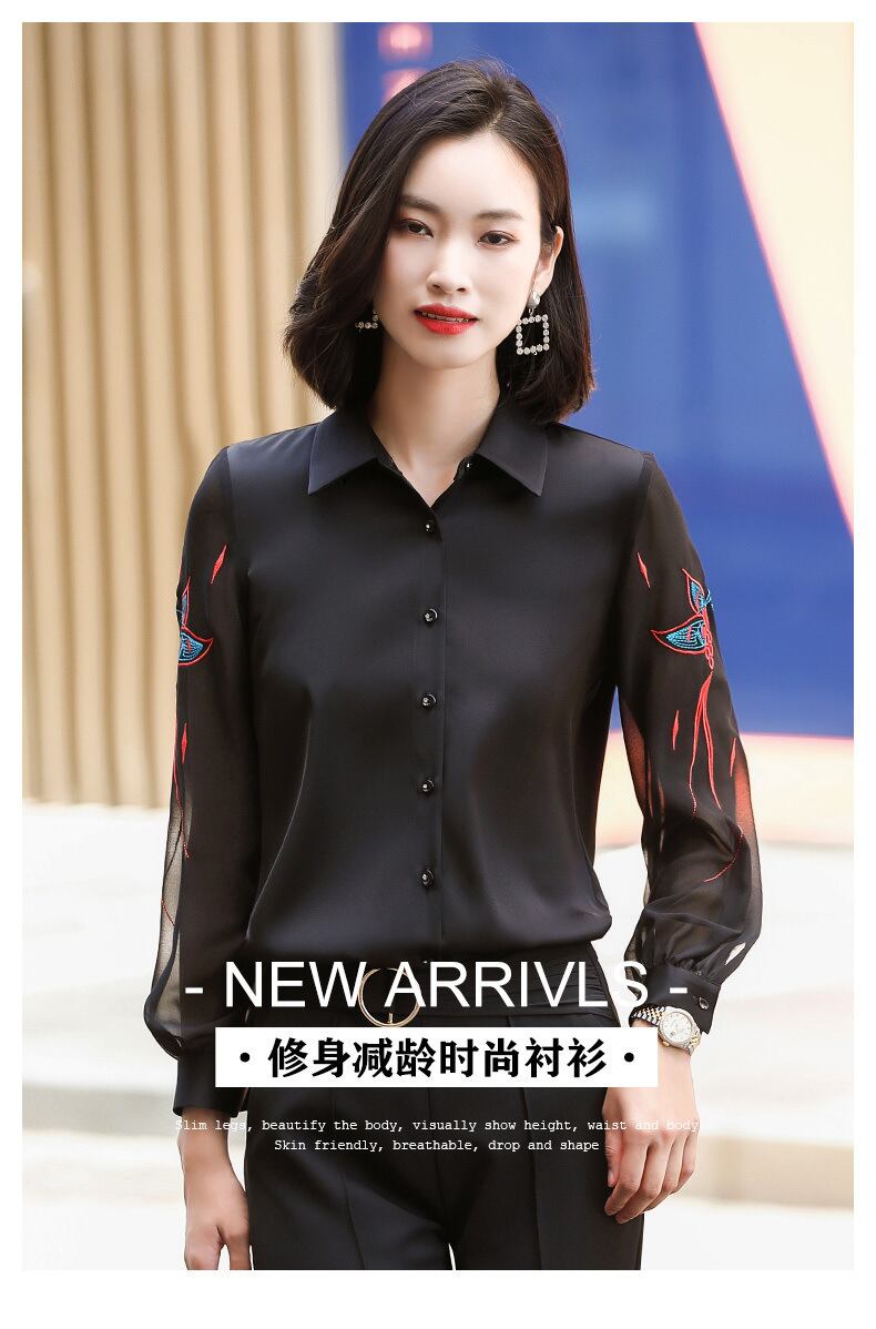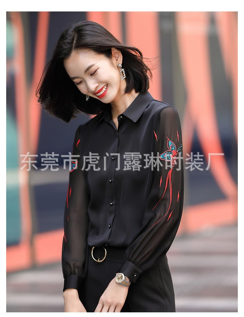 【新作】【送料無料】 2020年秋冬新作黒長袖シースルー刺繡シャツレディースデザインセンスニッチオールマッチブラウス-アリババ ロング ブラック 刺繍 オータム 秋物 ウィンター 冬物 12b338743177843