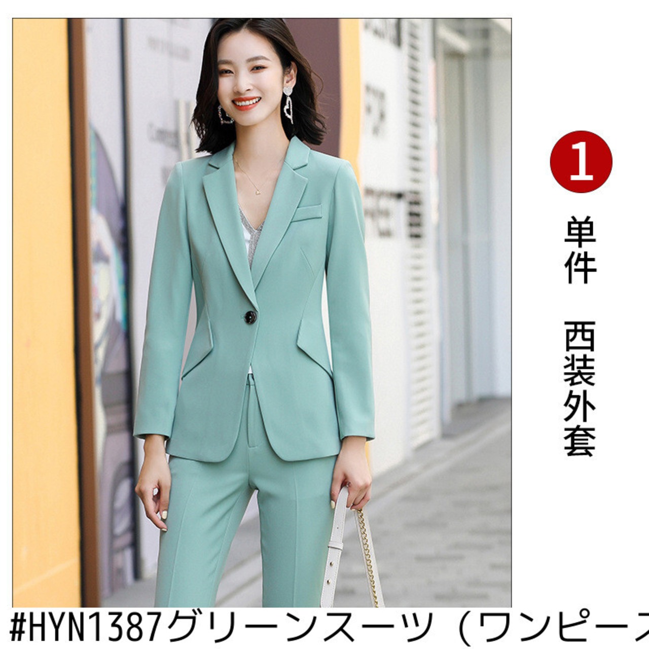 色:HYN1387ピンクスーツ(ワンピース),HYN1387グリーンスーツ(ワンピース),HYN1387ブラックスーツ(ワンピース),HYN1387ピンクスーツ+パンツツーピーススーツ,HYN1387グリーンスーツ+パンツツーピーススーツ,HYN1387黒スーツ+ズボンツーピーススーツ