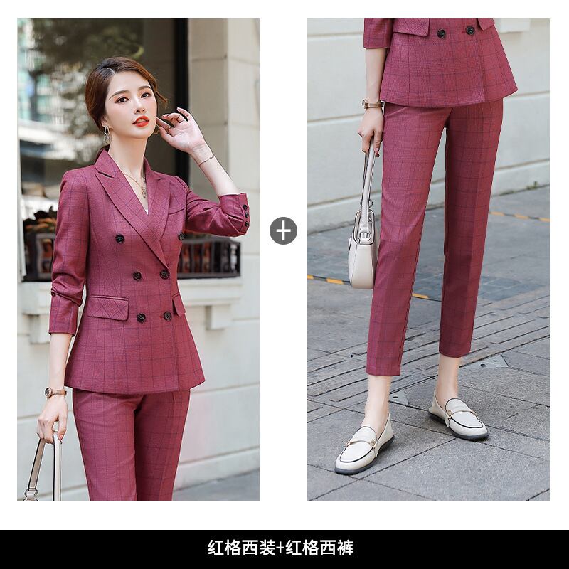 【新作】【送料無料】 格子縞のスーツスーツ女性のファッション気質の女神ファンプロのウェアバージョンの英国スタイルのカジュアルな小さなスーツの流行の工具-アリババ 12b388305597320