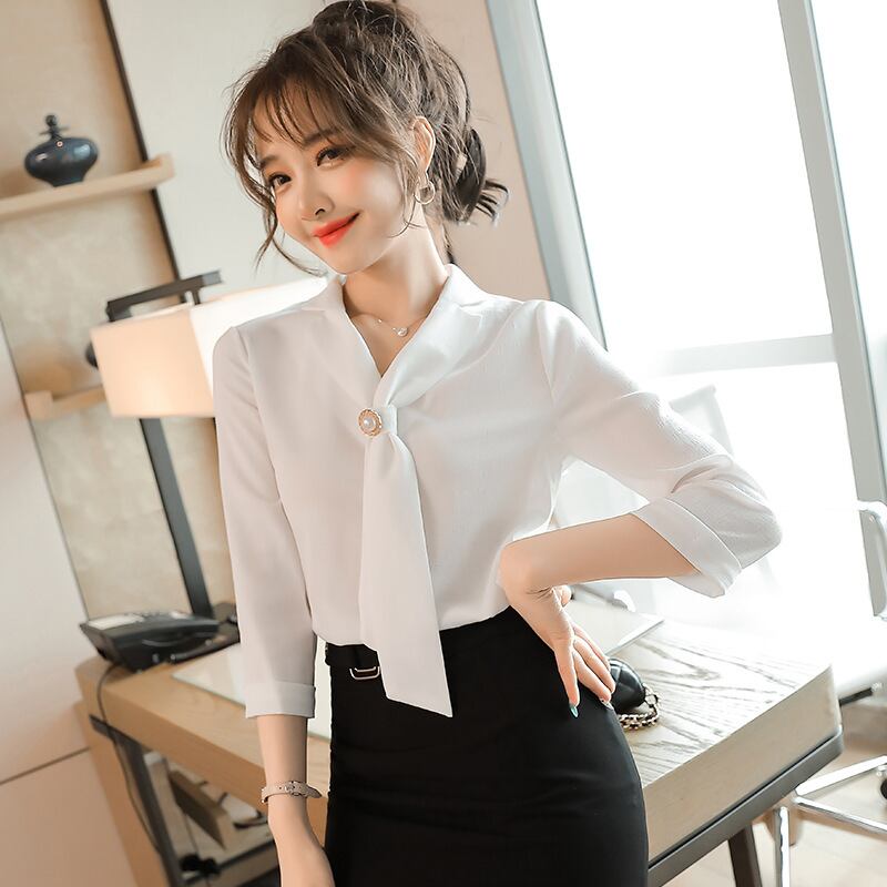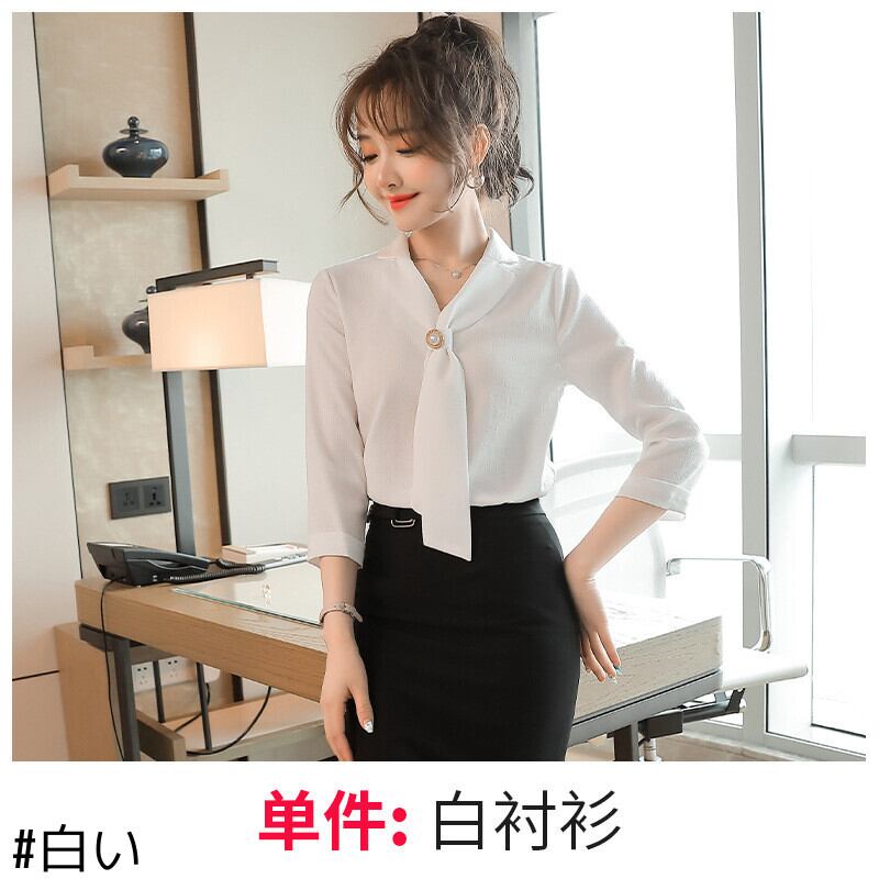 【新作】【送料無料】 ホワイトシフォンシャツ女性の2021年春の新しいトップスファッションウエスタンスタイルワイルド気質ミドルスリーブリボンシャツ-アリババ スプリング 春物 12b345371589864