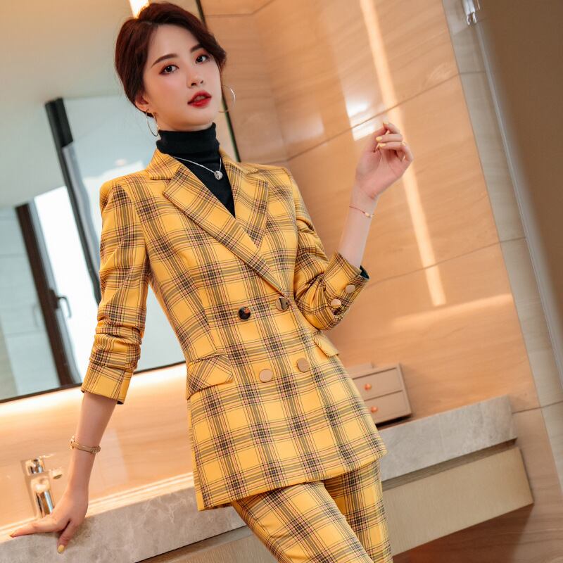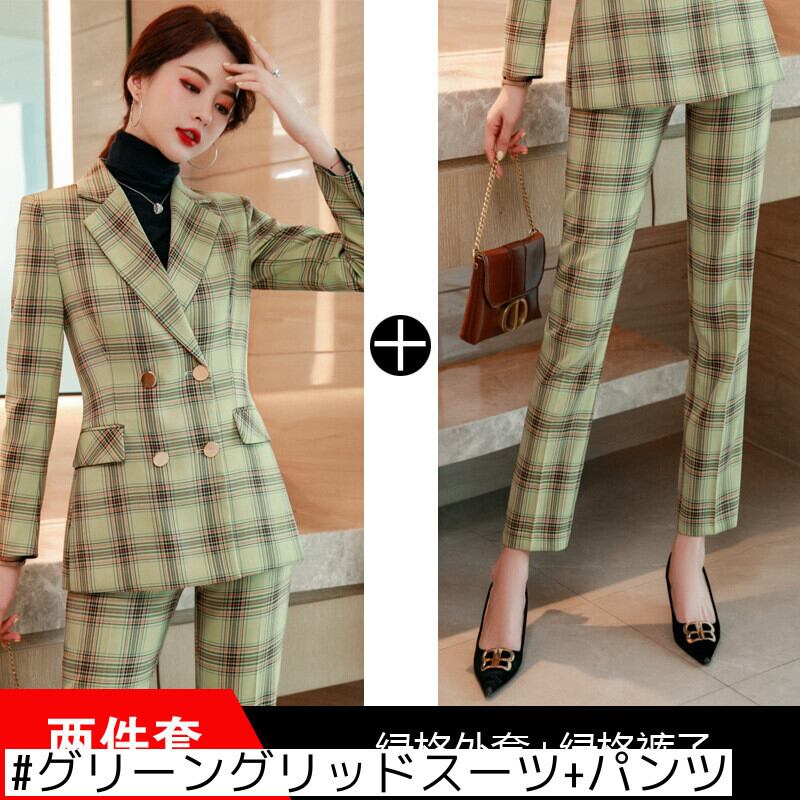 【新作】【送料無料】 チェック柄スモールスーツレディースカジュアルスーツブリティッシュスタイル気質プロウェア春秋スモール長袖スーツツーピーススーツ-アリババ ロング スプリング 春物 オータム 秋物 12b346304646262