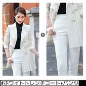 色:白い,黒,ホワイトトレンチコート+パンツ