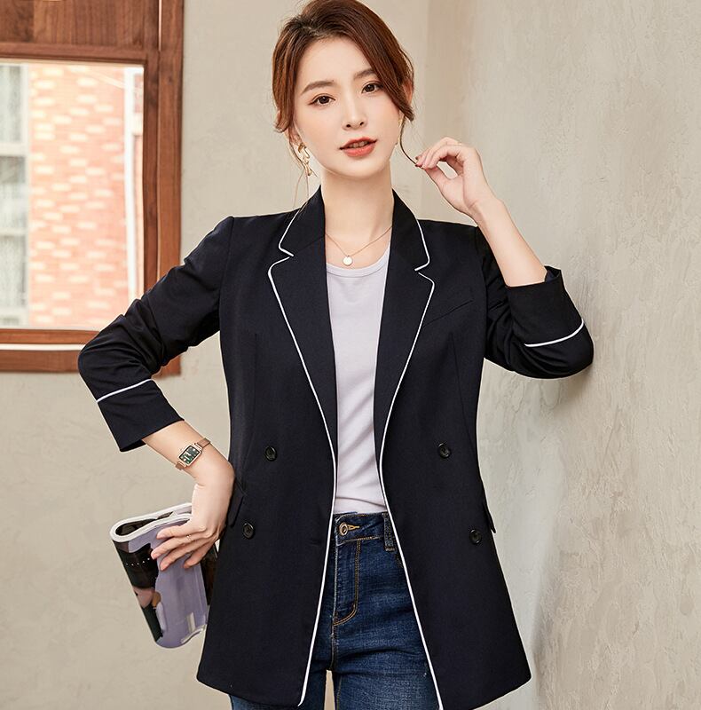 【新作】【送料無料】 黒のスモールスーツジャケット女性春秋長袖スタイル自家栽培気質ファッションデザインセンスダブルブレスト多目的スーツ-アリババ ロング ブラック スプリング 春物 オータム 秋物 12b381662217532
