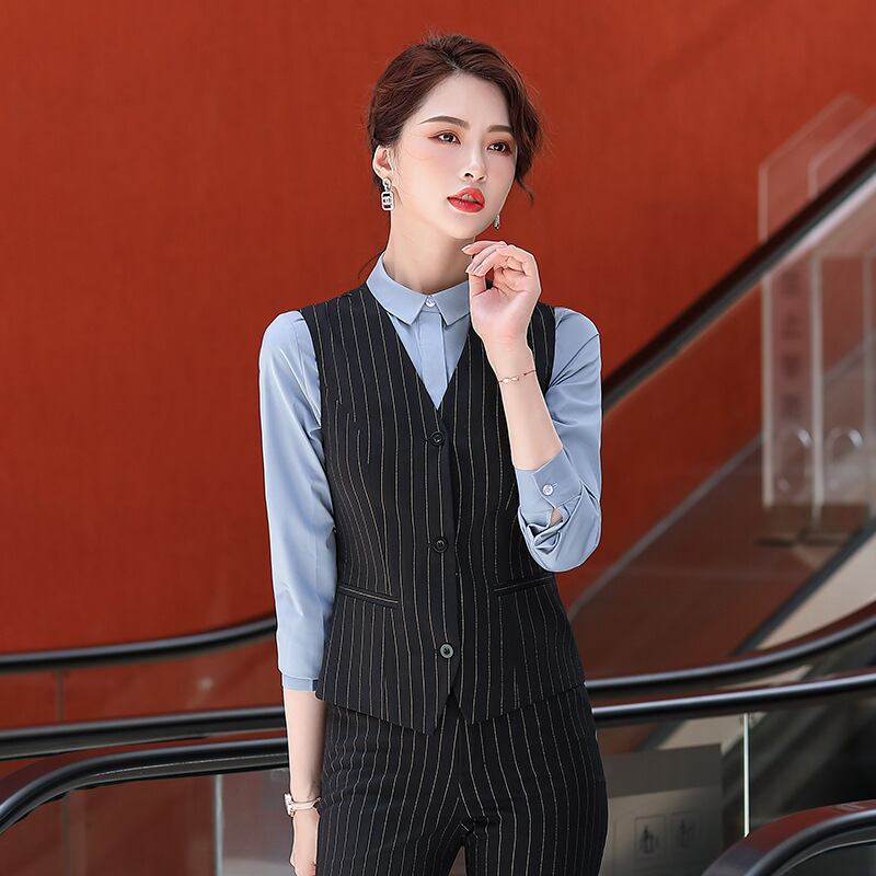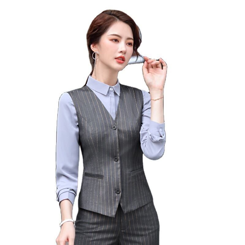 【新作】【送料無料】 ベストベストレディーススーツ春秋新作ファッションストライプレディースチョッキ気質ホワイトカラーエルフロントオーバーオール スプリング 春物 オータム 秋物 12b345985746706