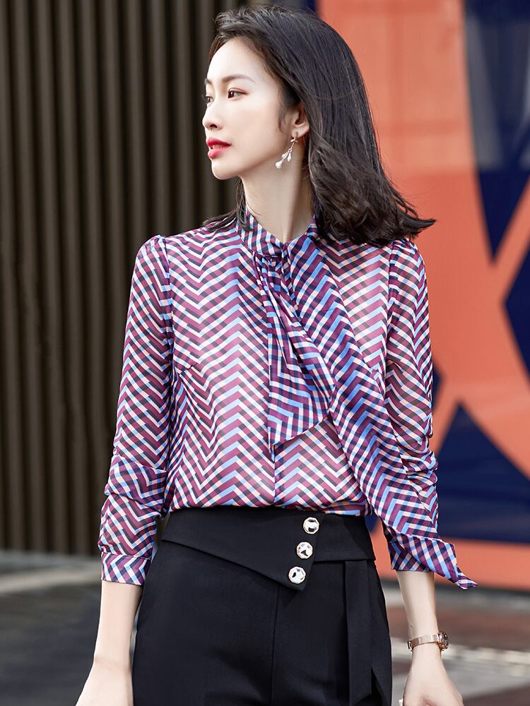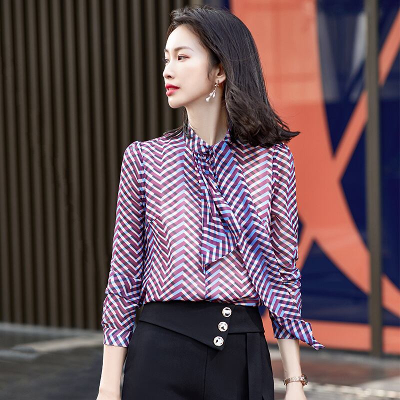 【新作】【送料無料】 センスニッチシフォンシャツレディースシャツ秋冬新スタイルウエスタンシフォンシャツストライプ長袖シャツ-アリババ ロング オータム 秋物 ウィンター 冬物 12b371396877791