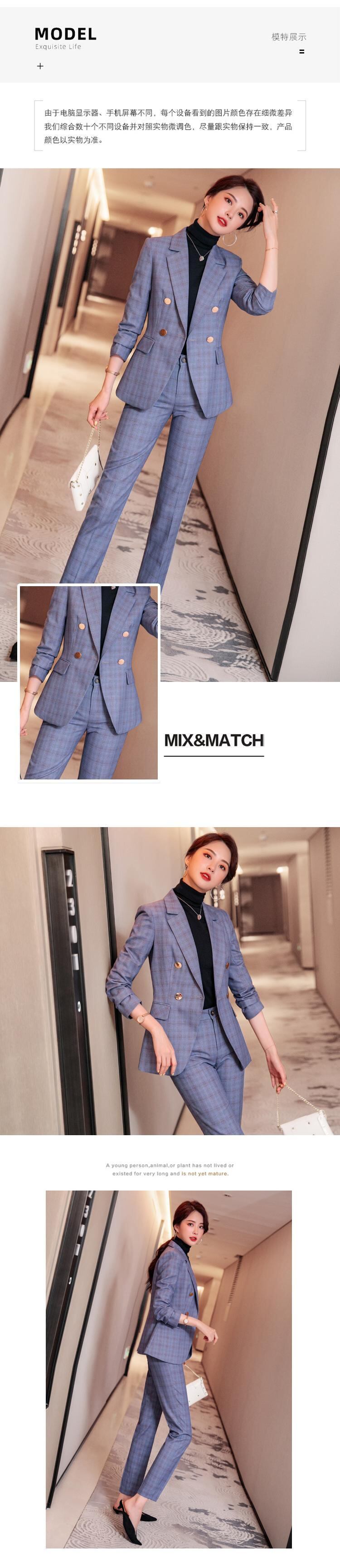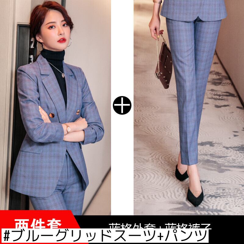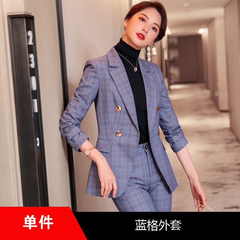 【新作】【送料無料】 ブルーチェック柄スーツ女性版2021年秋冬新作長袖ファッショナブルな洋風年齢制限スーツプロウェア-アリババ ロング オータム 秋物 ウィンター 冬物 12b386257971951