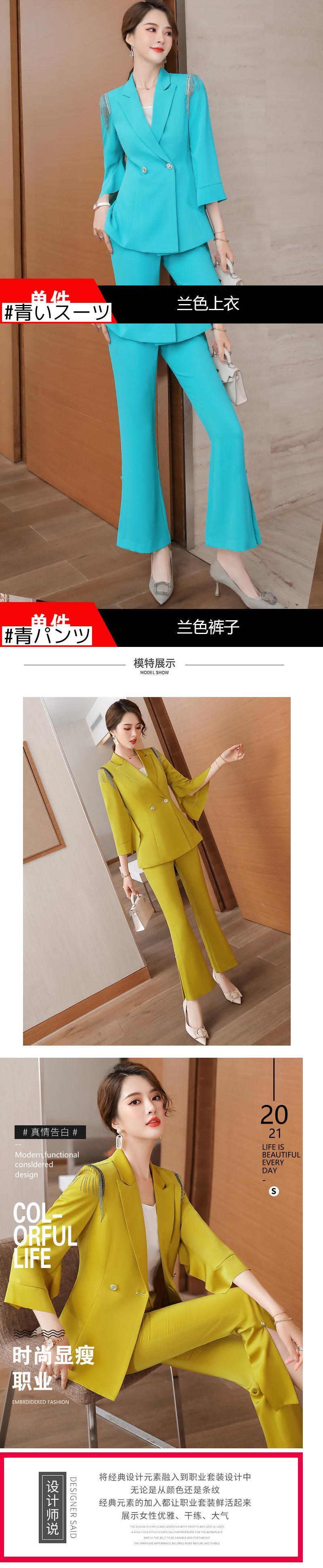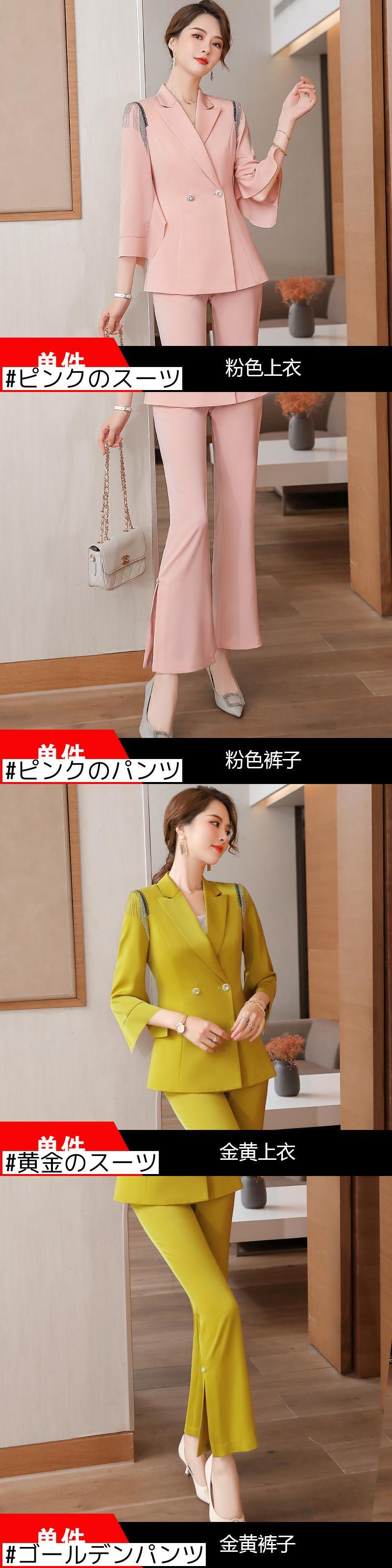 【新作】【送料無料】 ブルースーツスーツレディース2021年春新しいファッションプロウェア気質の女神ファンフレアパンツツーピースセット-アリババ レッド スプリング 春物 12b327151433448