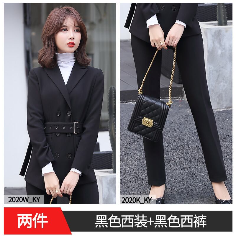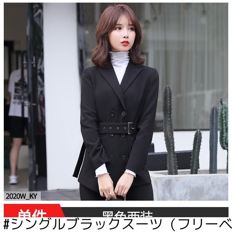 【新作】【送料無料】 黒のスーツジャケットの女性の秋と冬のベルトスタイルスリムな英国スタイルのダブルブレストビジネスウェアの小さなスーツの冬-アリババ ブラック オータム 秋物 ウィンター 冬物 ハーネス 12b344489745441