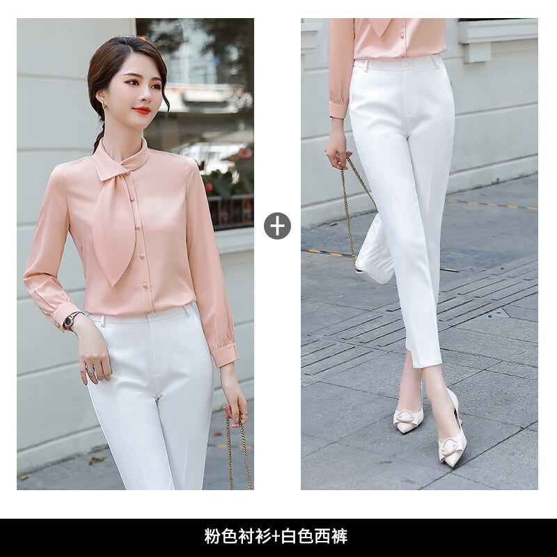 【新作】【送料無料】 白いシャツの女性の新しい2021年のデザインセンスのニッチなトップス、西洋スタイルのシフォンシャツの女性の秋の長袖-アリババ ロング ホワイト オータム 秋物 12b38265504735