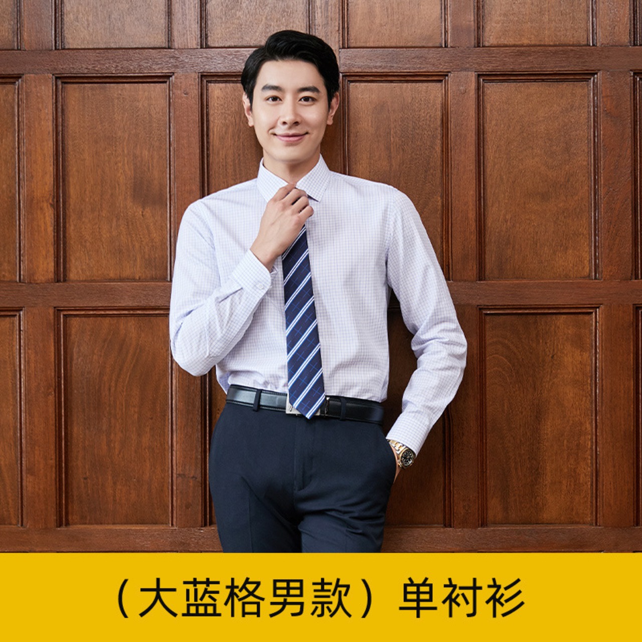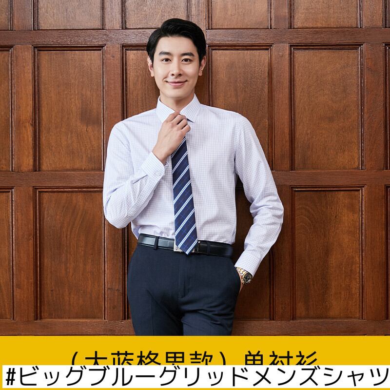 色:ビッグブルーグリッドメンズシャツ,大きな青いグリッドブラウス