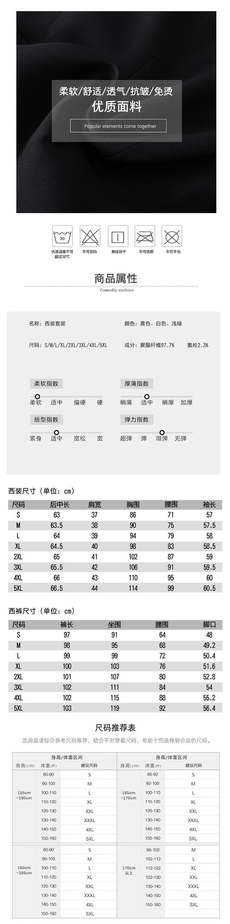 色:ホワイトスーツ+パンツ,黒のスーツ+パンツ,レイクブルーのスーツ+パンツ,白のシングルスーツ,黒のシングルスーツ,レイクブルーシングルスーツ,白シングルパンツ,黒のシングルパンツ,レイクブルーシングルパンツ
