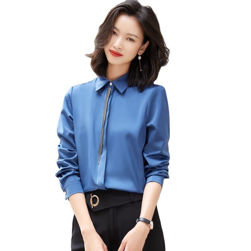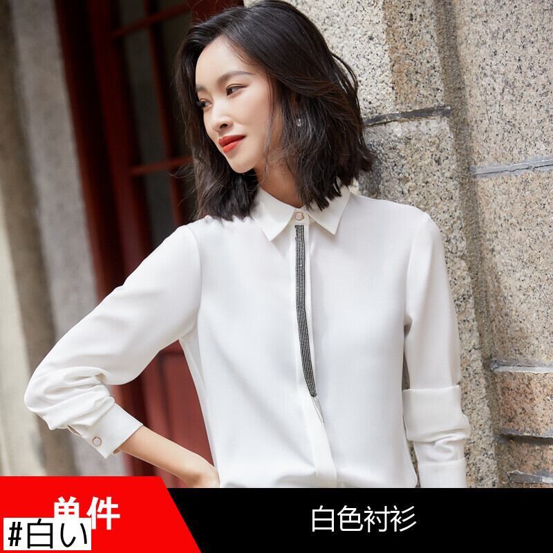 【新作】【送料無料】 白いシャツの女性の2021年秋新しい洋風ブラウススタイルのデザインセンスニッチ長袖シャツ通勤女性-アリババ ロング ホワイト オータム 秋物 12b340628876614