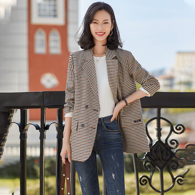 【新作】【送料無料】 スタイルチェック柄スモールスーツジャケット女性デザインセンスニッチレトロファッションブリティッシュスタイルオールマッチカジュアルスーツジャケット-アリババ 12b365179896620