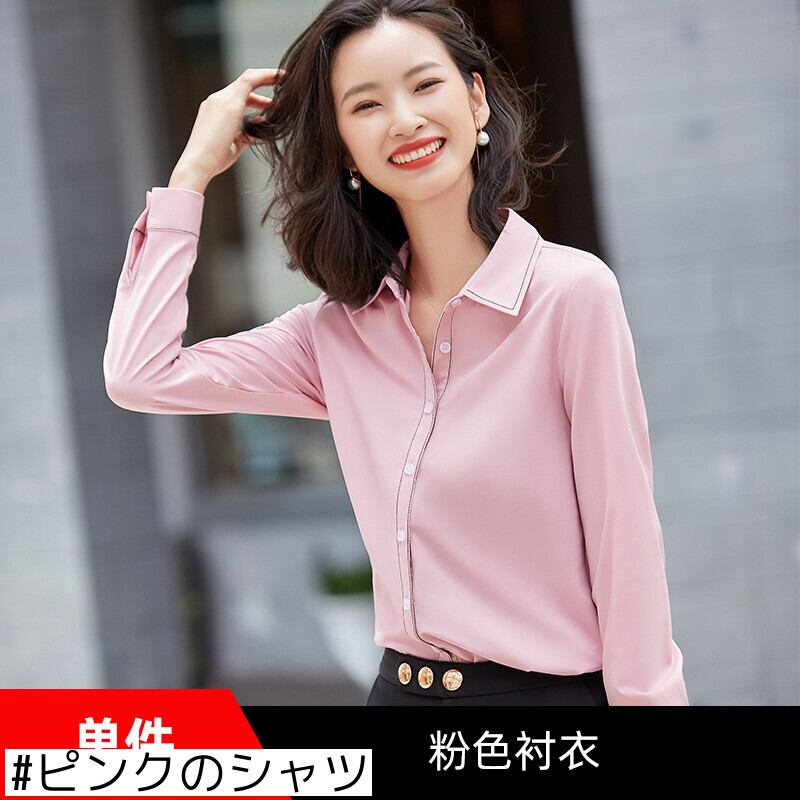 【新作】【送料無料】 2020ピンクシャツの女性が長袖のシフォントップスを緩める春と秋のアウターウェアオールマッチ気質インタビュープロのシャツ労働者-アリババ ロング スプリング 春物 オータム 秋物 12b33135379936