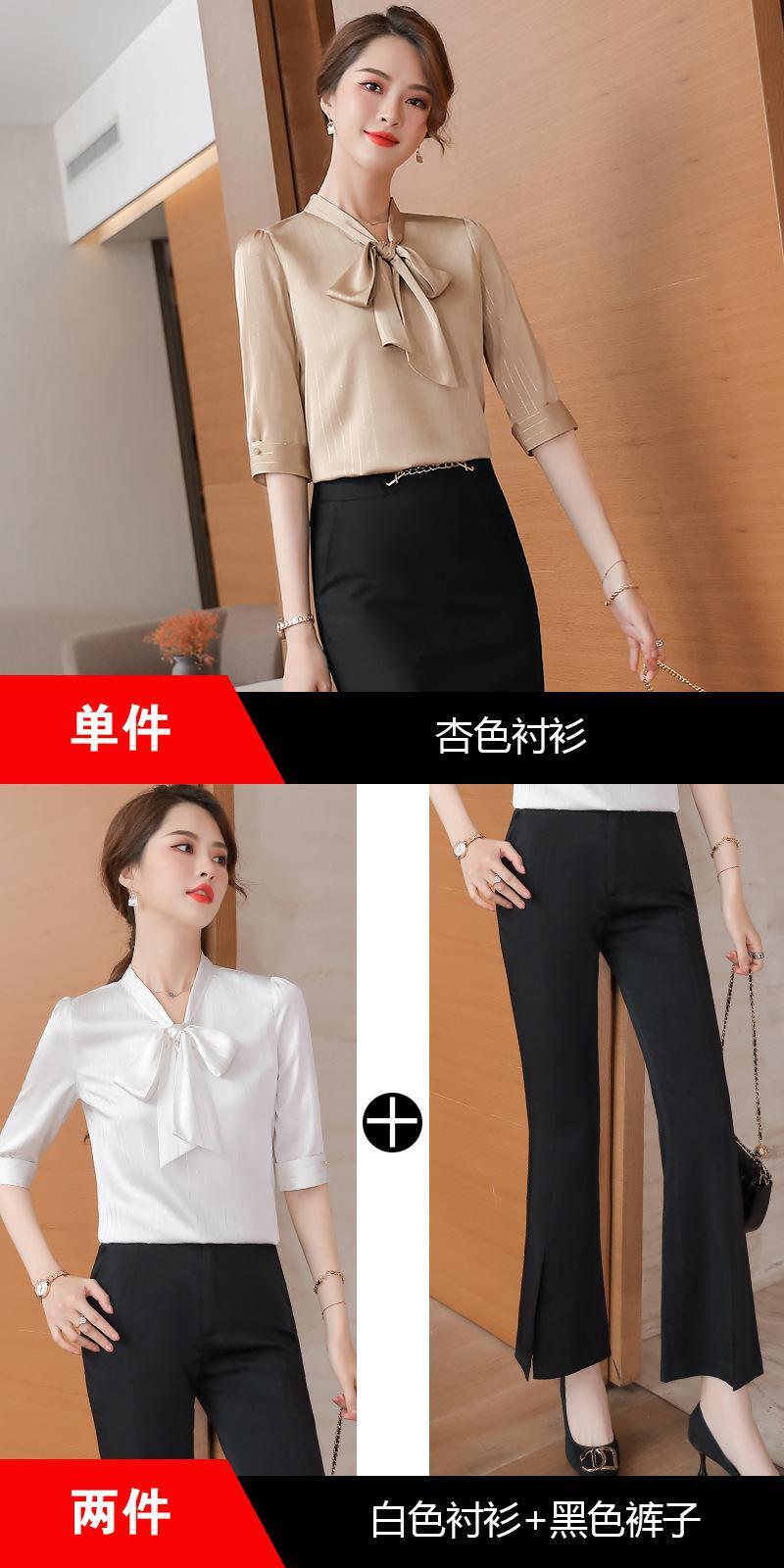 色:白い,ピンク,赤ワイン,アプリコット,白いシャツ+パンツ,ピンクシャツ+スカート,ブルゴーニュシャツ+パンツ,アプリコットシャツ+スカート,黒スカート,黒いズボン