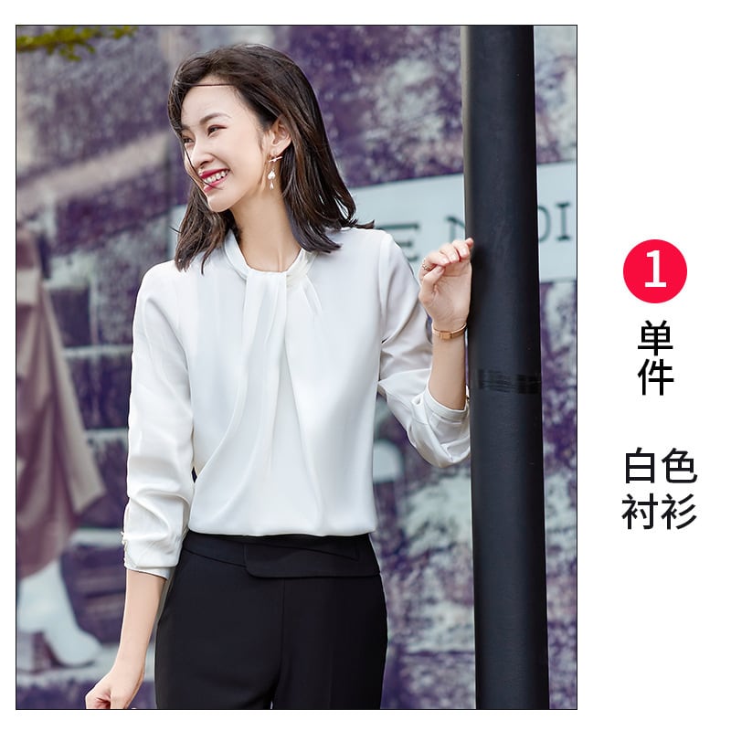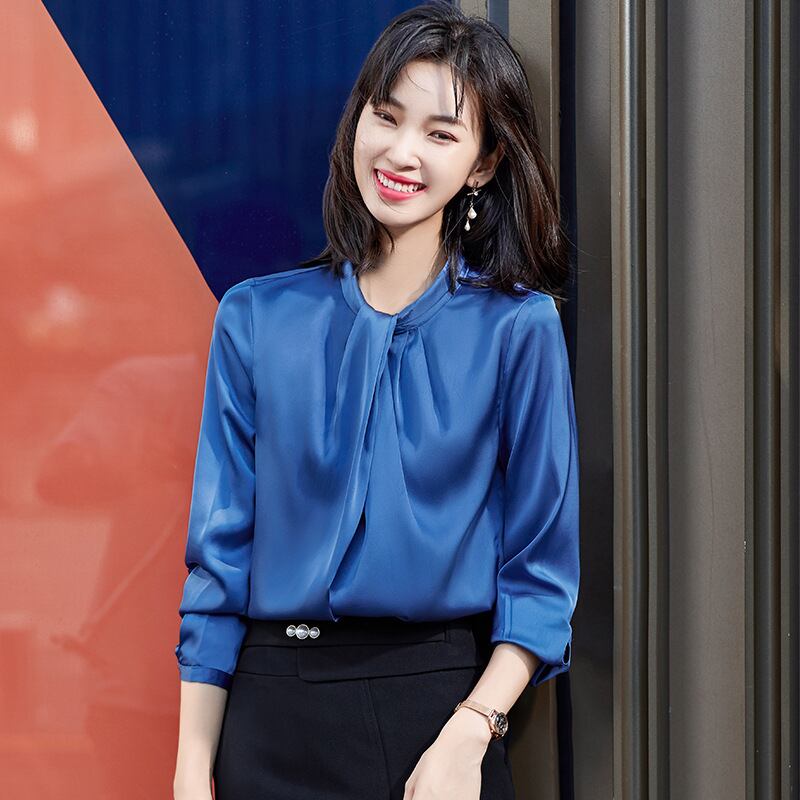 【新作】【送料無料】 ブルーシフォンシャツレディース長袖秋冬スタンドカラーシャツプロ気質デザインセンスニッチホワイトシャツ-アリババ ロング ウィンター 冬物 12b335075942871