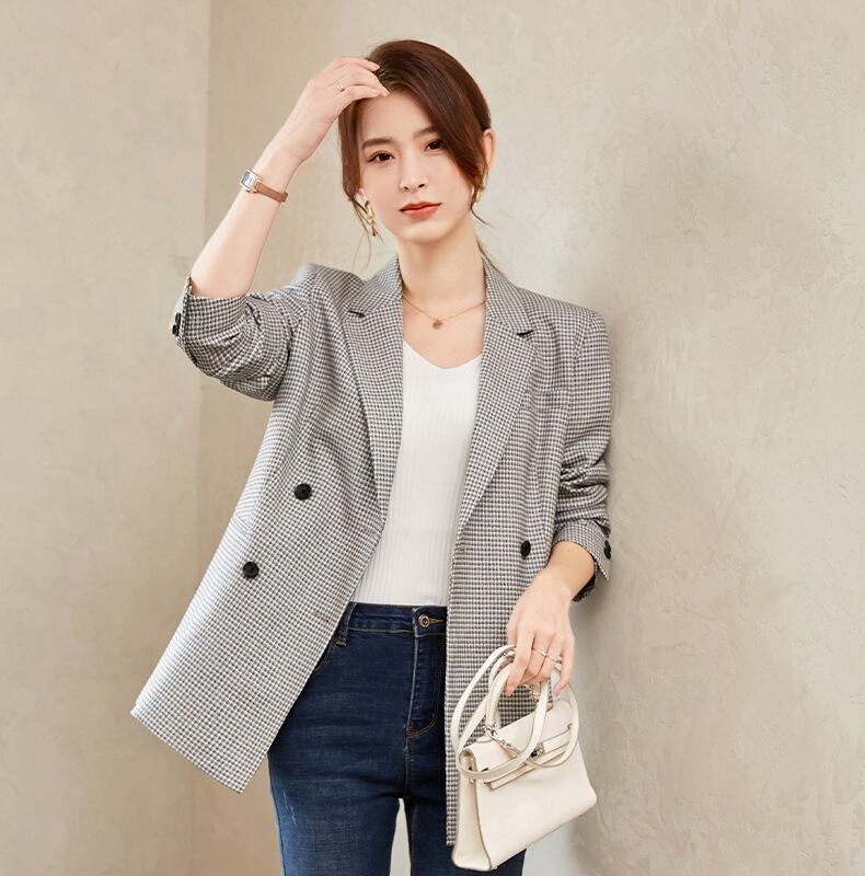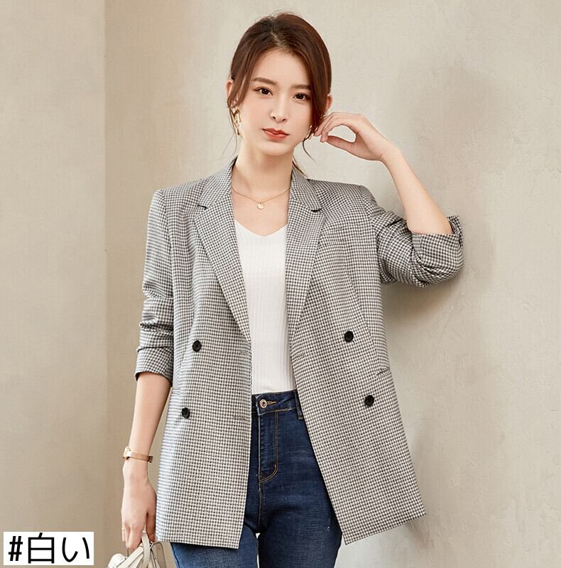 【新作】【送料無料】 ブレザーの女性2021年の新しい春と秋のスタイルの小さなスーツ明るい格子縞のミドル丈のスーツの女性のジャケット-アリババ スプリング 春物 オータム 秋物 12b338702328824