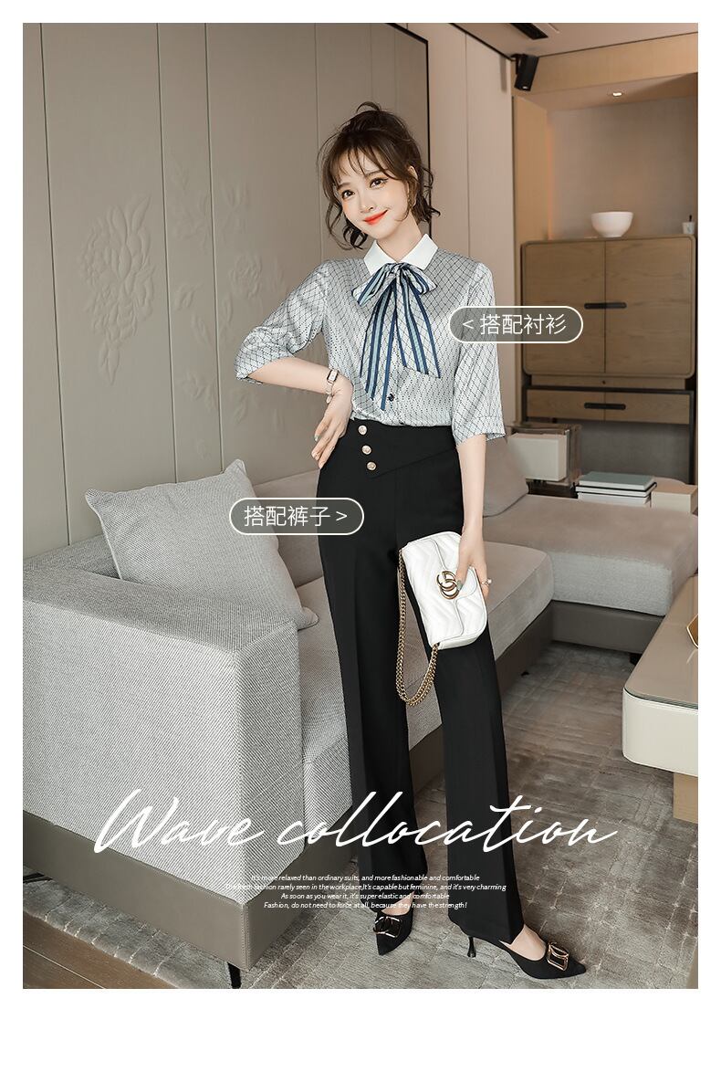 【新作】【送料無料】 ミッドスリーブチェック柄シャツ女性2021年春新しいデザインセンスニッチ七分袖サテンシフォンシャツトップ-アリババ スプリング 春物 12b333349653485