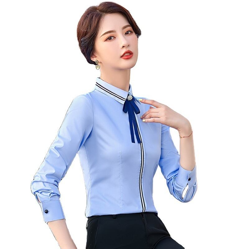 【新作】【送料無料】 白いシャツの女性の長袖プロ2021年春と秋のスタイルは新しいmalwork服作業服シャツ気質を上回ります ロング ホワイト スプリング 春物 オータム 秋物 12b360279383809