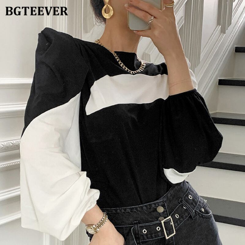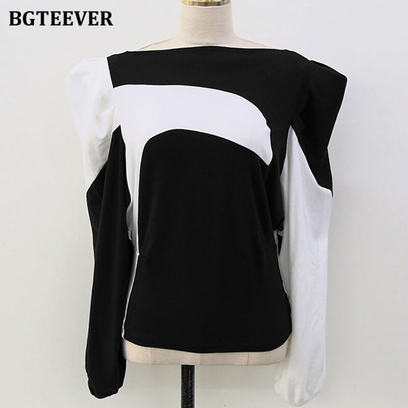 【新作】【送料無料】 BGTEEVERスプリングスラッシュネックヒットカラーレディースシャツ2021スタイリッシュな長袖ルーズブラウスシック ロング 春物 12b154483820890
