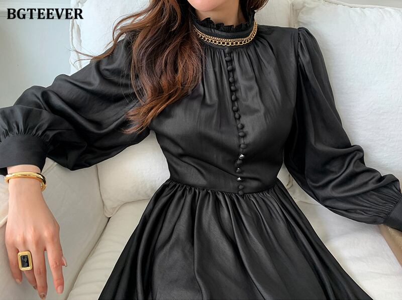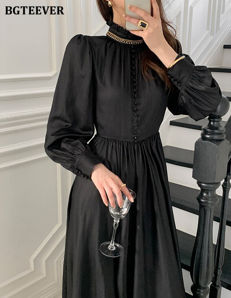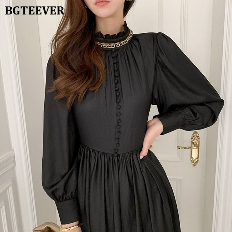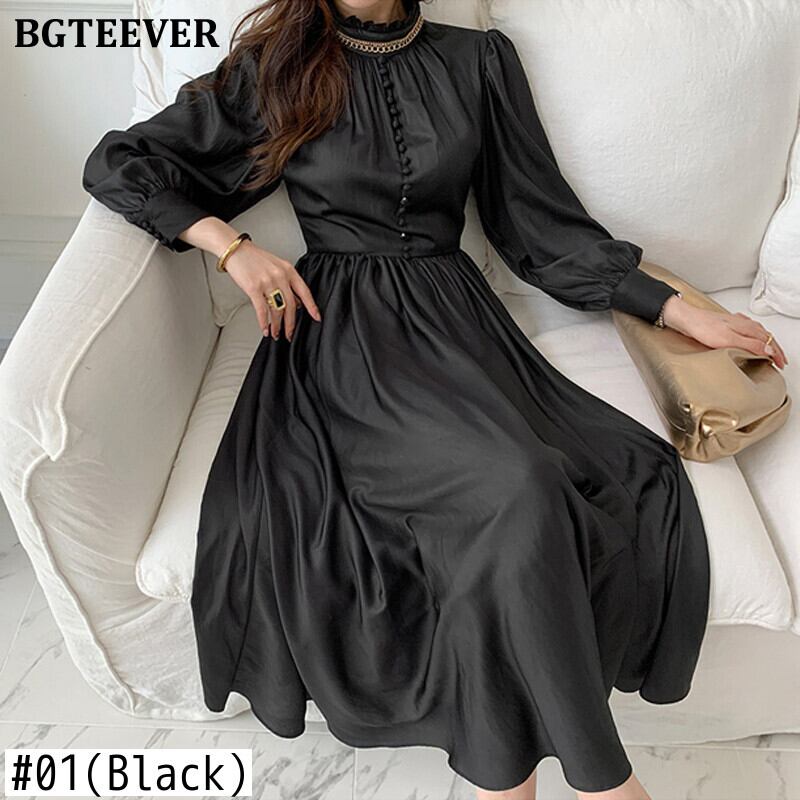 【新作】【送料無料】 BGTEEVERシングルブレストレディースAラインドレス春作業着スタンドカラースリムウエストミディヴェスティドスソリッドドレス スプリング 春物 ソリッドカラー 12b165237079904