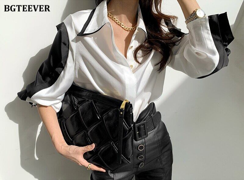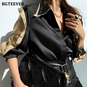 【新作】【送料無料】 BGTEEVERスタイリッシュなシングルブレストの女性シャツブラウス2021年春のヒットカラーターンダウンカラートップスルーズ スプリング 春物 12b159124564073