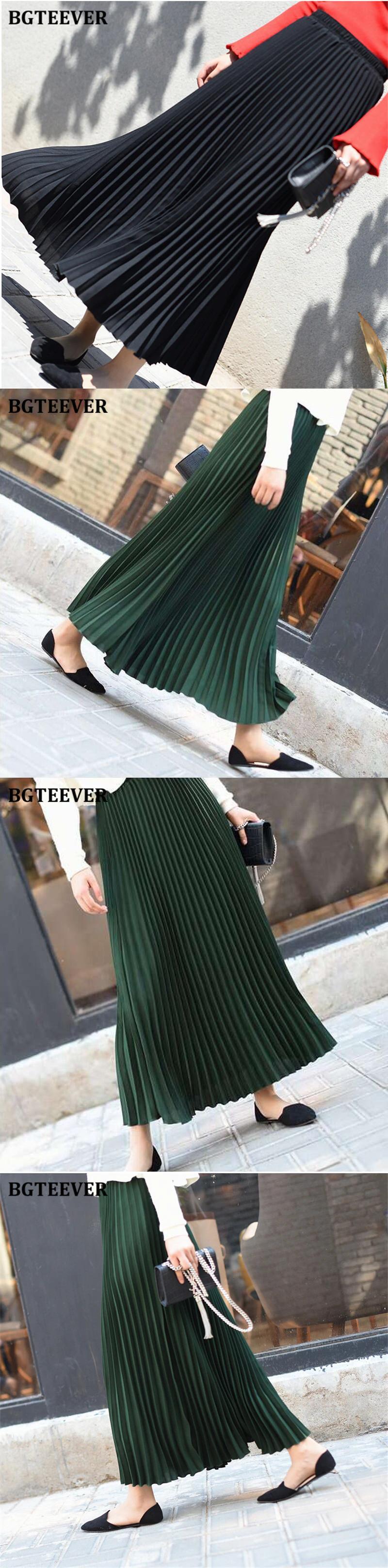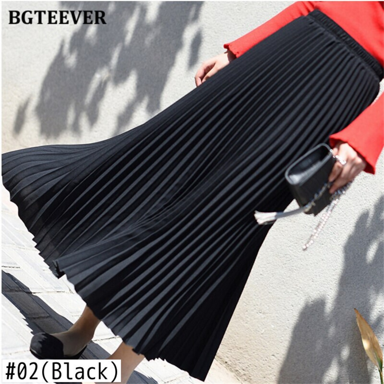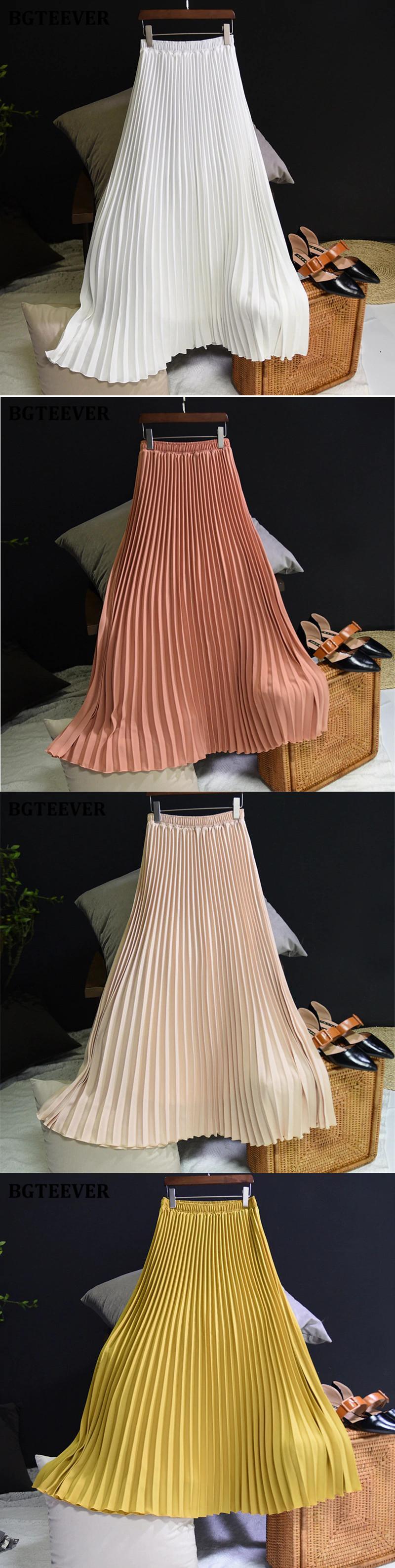 【新作】【送料無料】 ウィメンズプリーツソリッドミドル丈スカートスプリングエラスティックウエストルーズロングAラインスカート10カラー 伸縮 春物 ソリッドカラー 12b14818320852