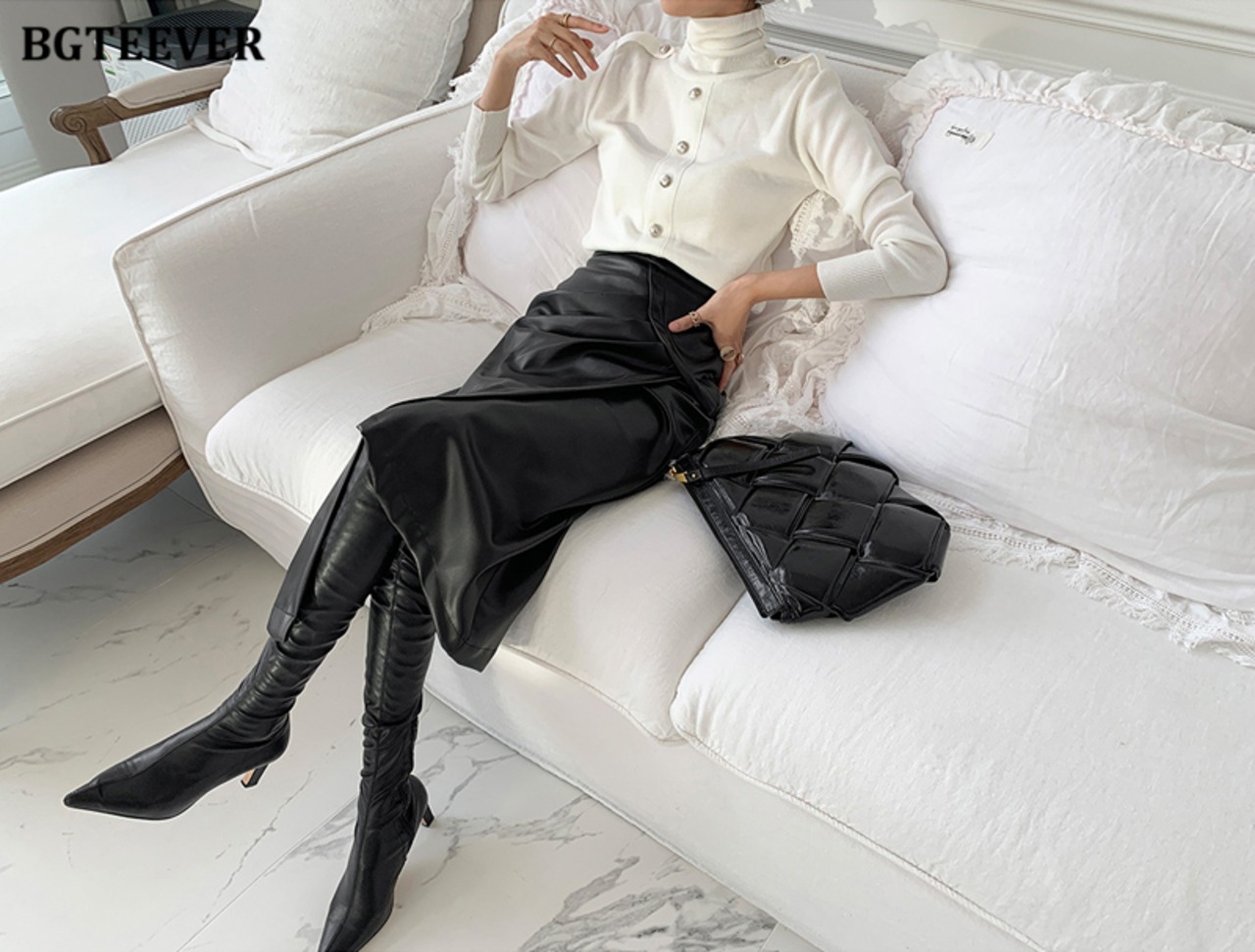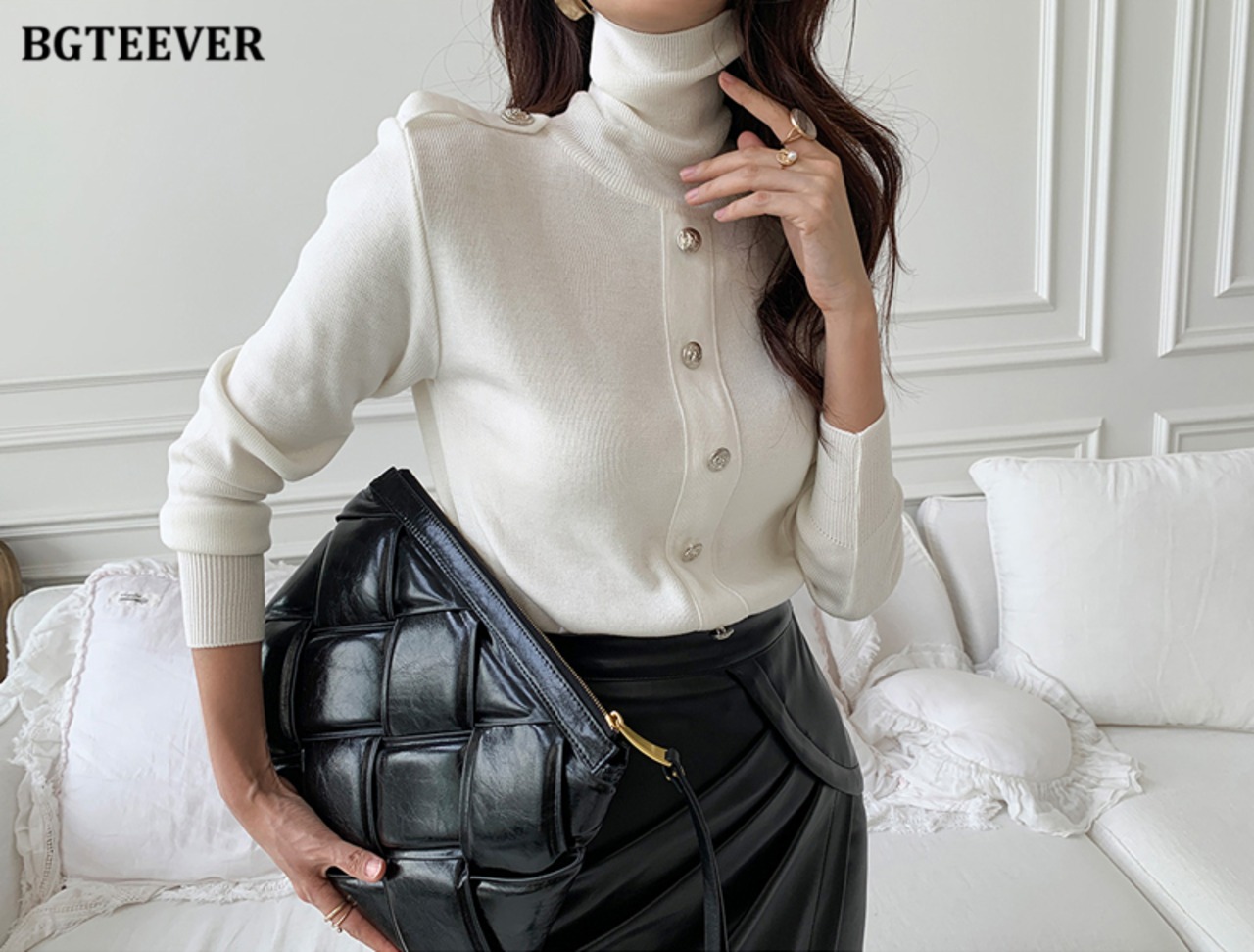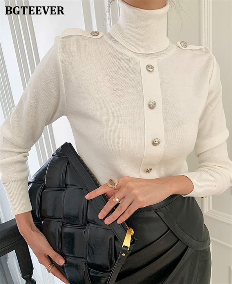 【新作】【送料無料】 BGTEEVERスリムタートルネックシングルブレスト女性ニットセーター冬長袖ストレッチプルオーバージャンパー ロング ウィンター 冬物 12b170565535033