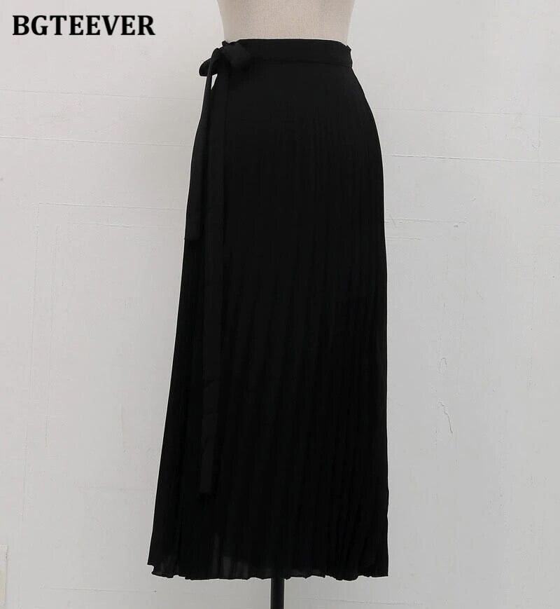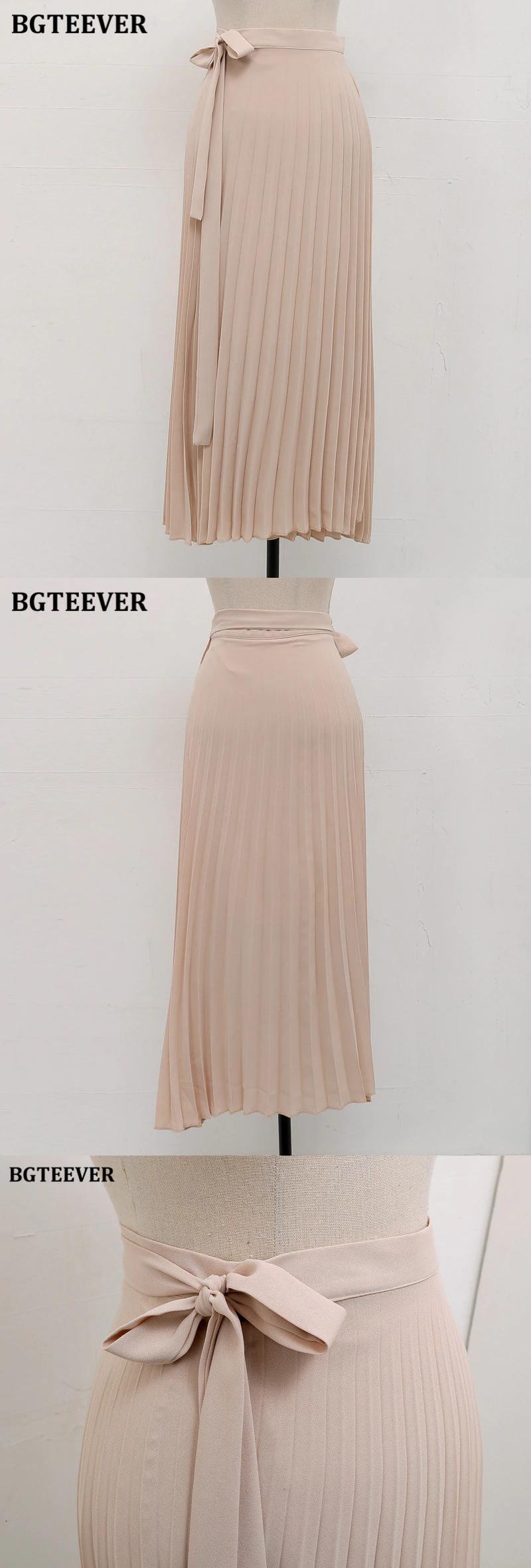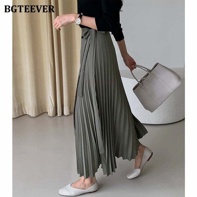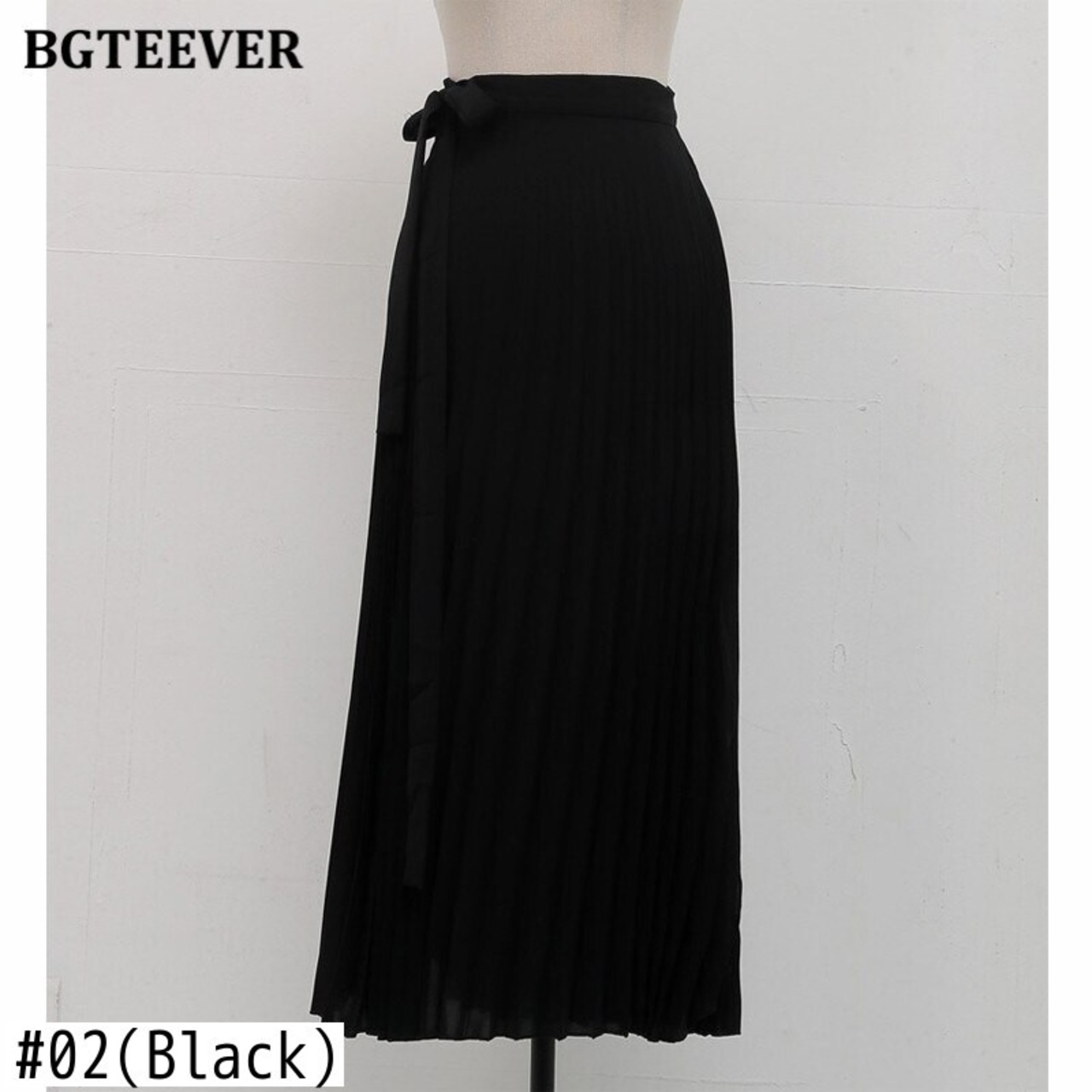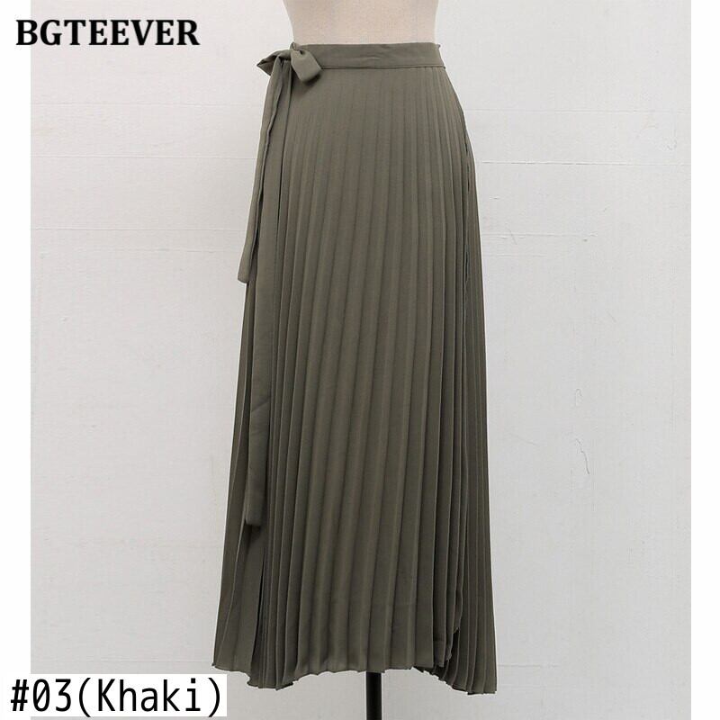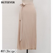 【新作】【送料無料】 BGTEEVERレースアップ女性プリーツミドル丈スカート2021春ウエストAラインロングスカートルーズスカート スプリング 春物 12b113341641783