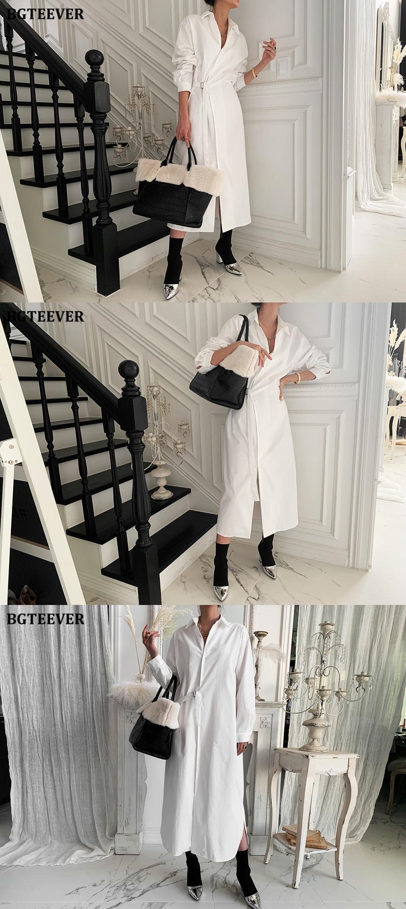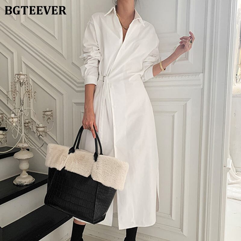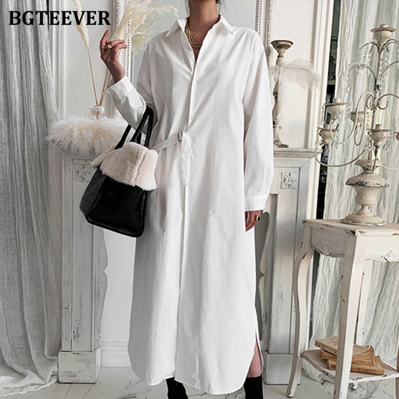 【新作】【送料無料】 BGTEEEVRターンダウンカラーレディースソリッドシャツドレスシングルブレストルーズベルトロングストレートドレス2021春 スプリング 春物 ハーネス ソリッドカラー 12b18834852760