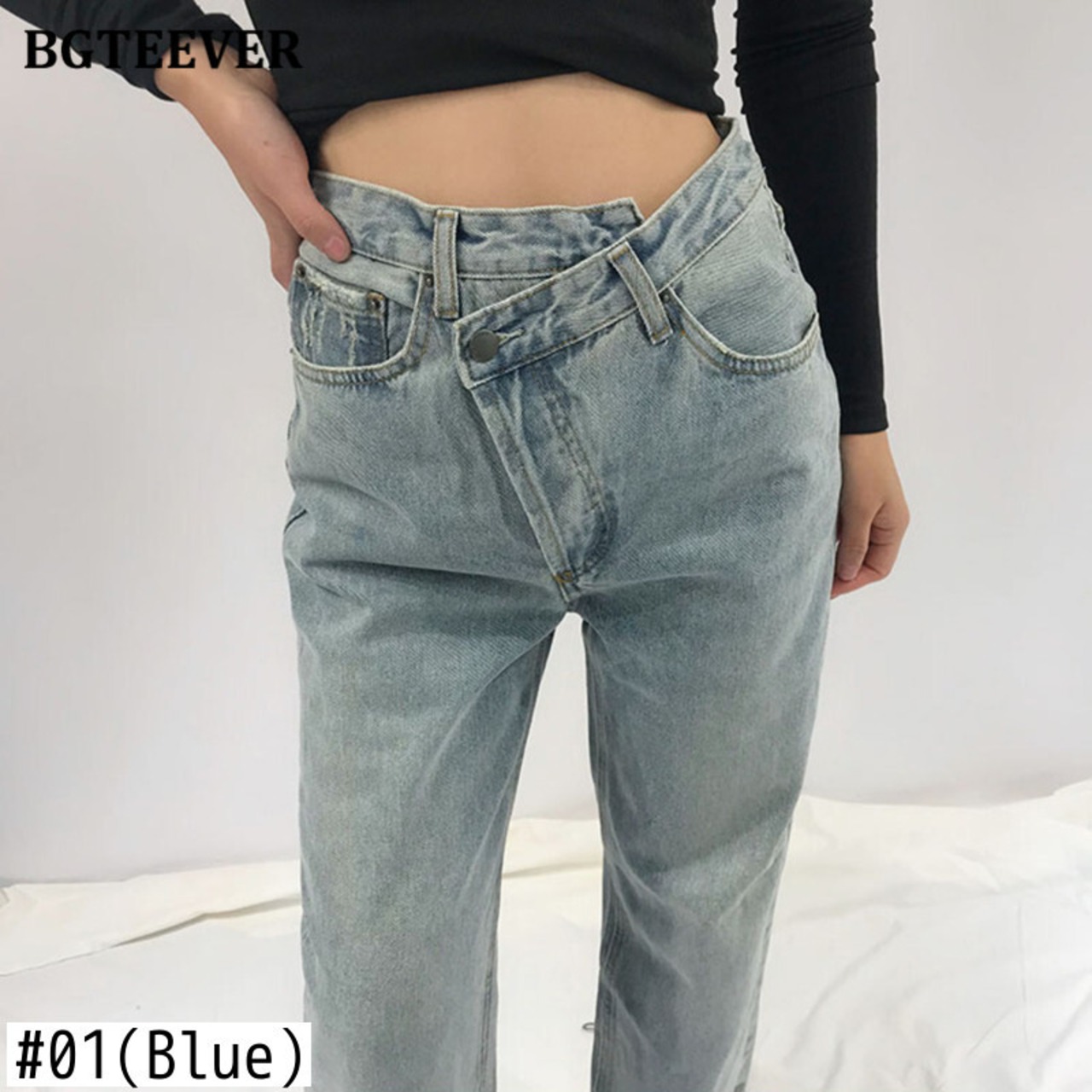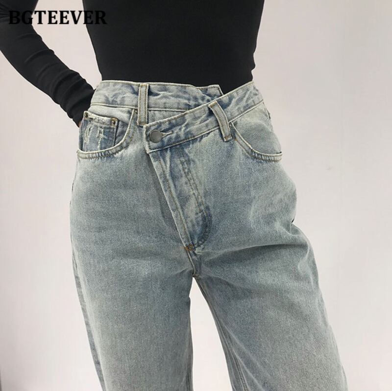 【新作】【送料無料】 BGTEEVERヴィンテージシックな女性の傾斜ボタンストレートレッグジーンズパンツ2021春のルーズウエストデニムパンツ スプリング 春物 ビンテージ 12b190462703438