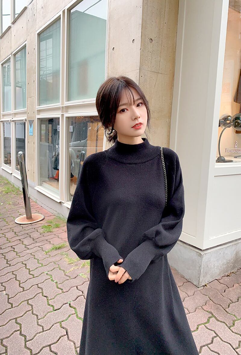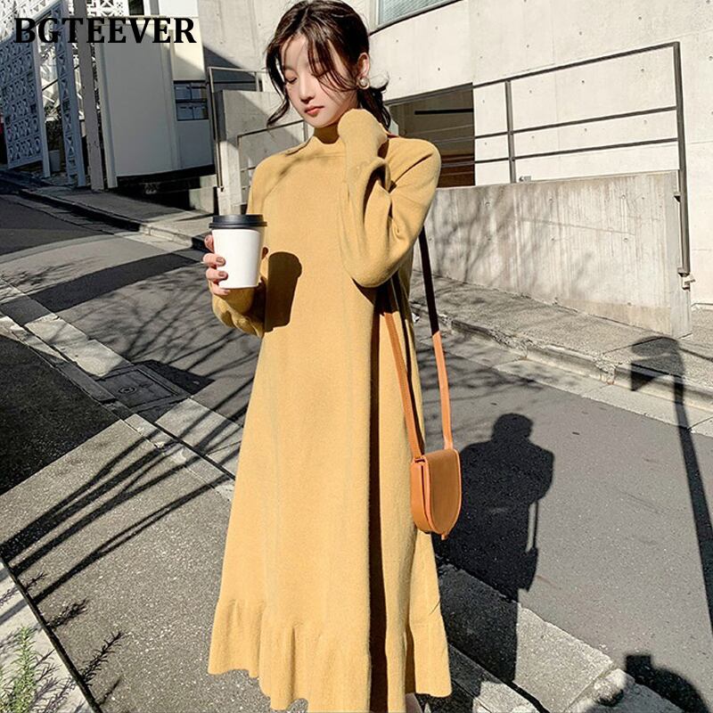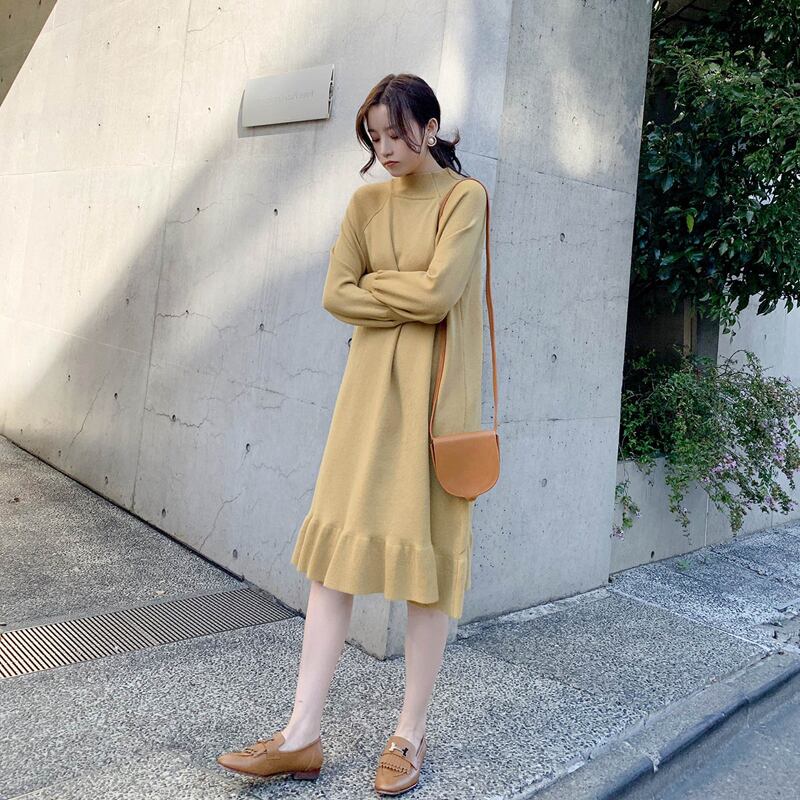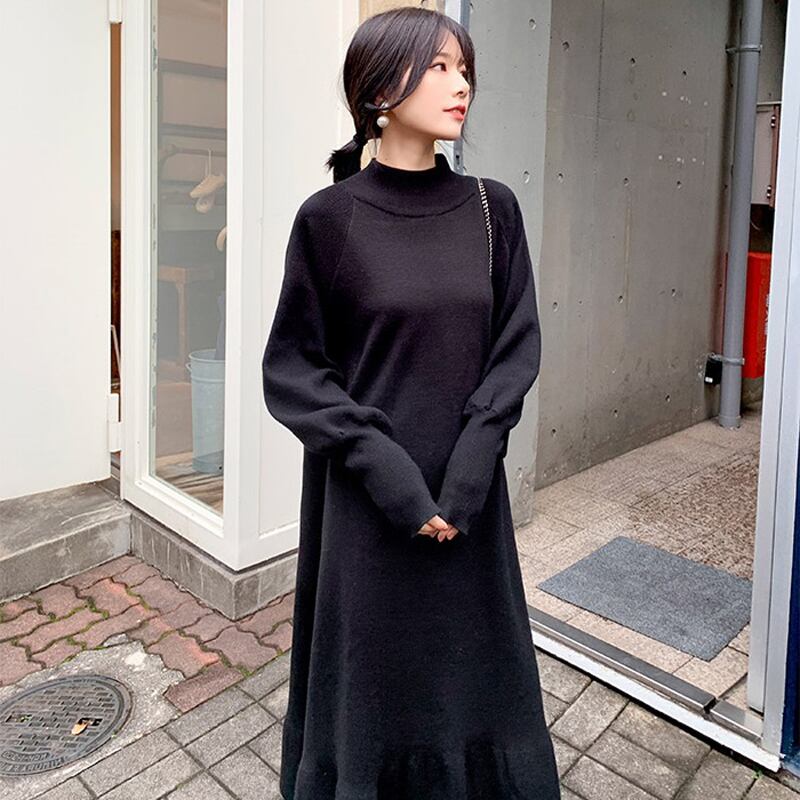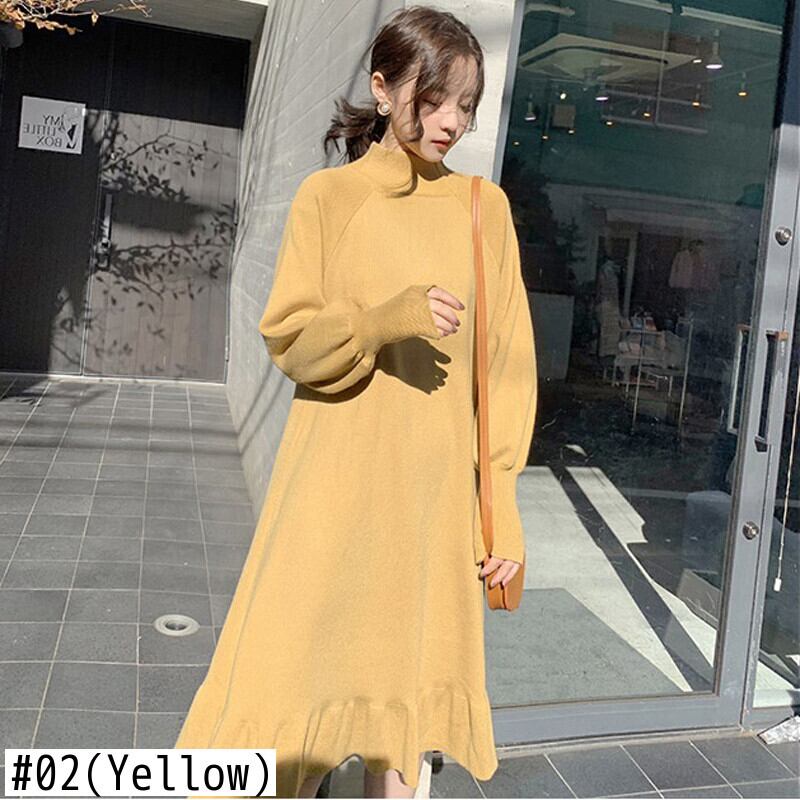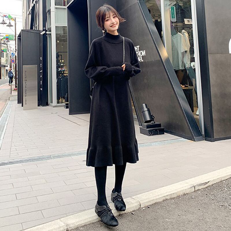 【新作】【送料無料】 BGTEEVERハーフタートルネックルースウィミンセータードレスシックな秋冬ドレスフリルアラインジャンパー ラッフル オータム 秋物 ウィンター 冬物 12b124200609115