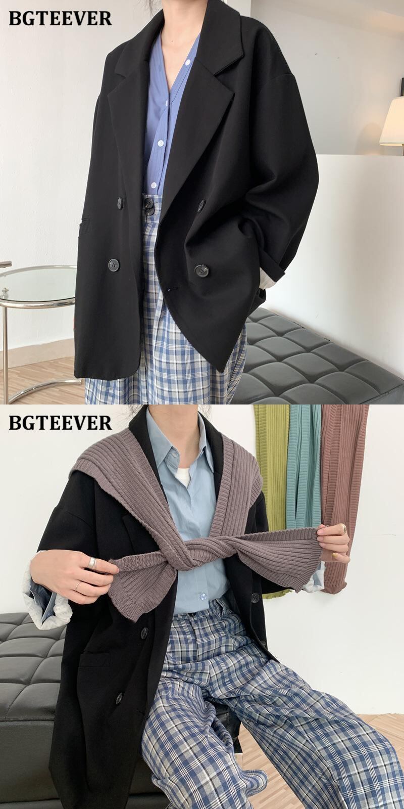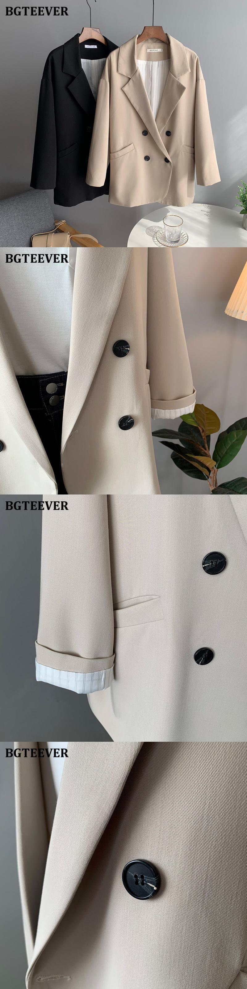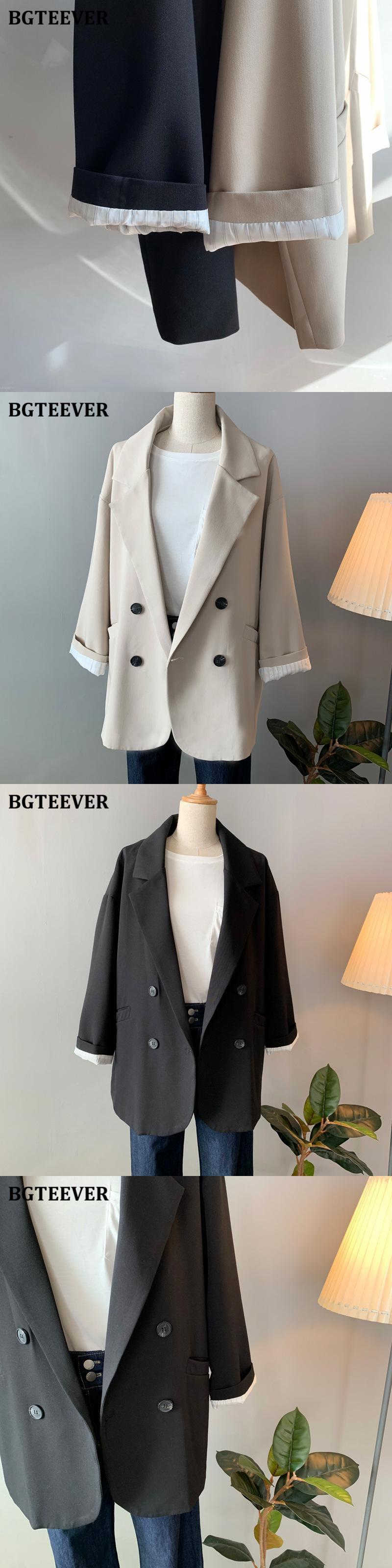【新作】【送料無料】 BGTEEVERスプリングダブルブレストレディーススーツジャケット長袖ルーズブレイザー2021ヴィンテージアウタートップス ロング 春物 ビンテージ 12b121489065054