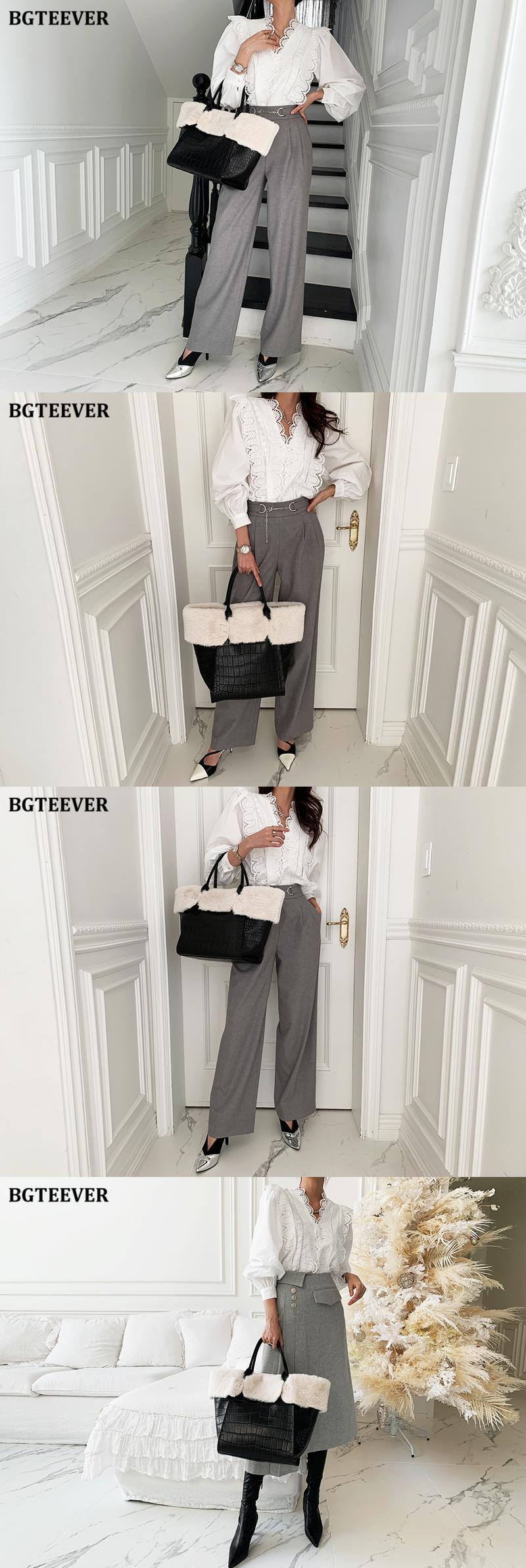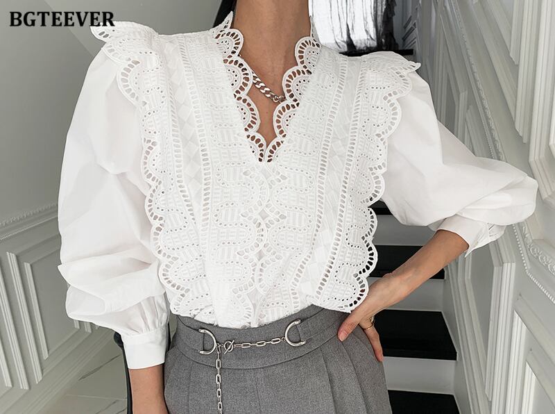 【新作】【送料無料】 BGTEEVERVネックレースレディースホワイトシャツブラウス2021春長袖ルーズシャツトップス ロング スプリング 春物 12b126998818807