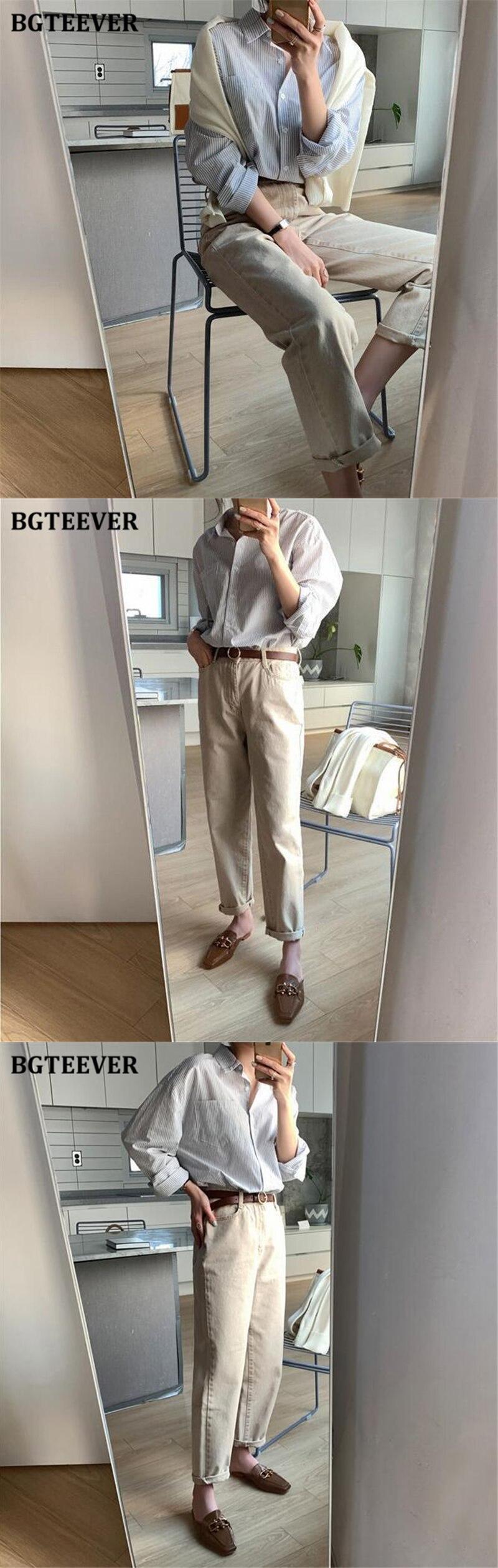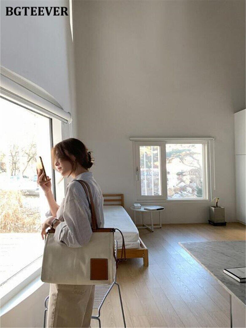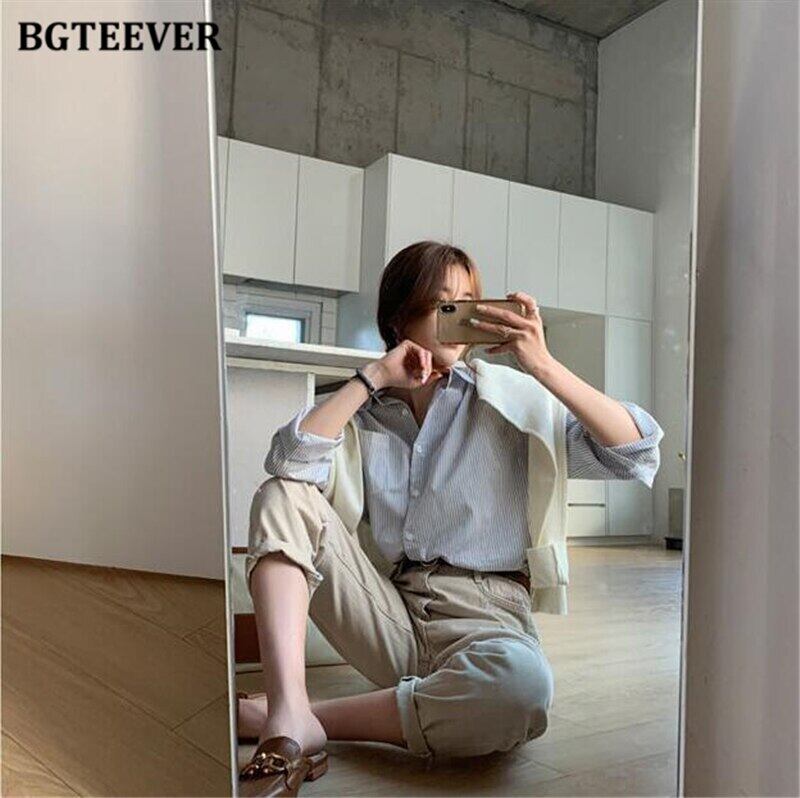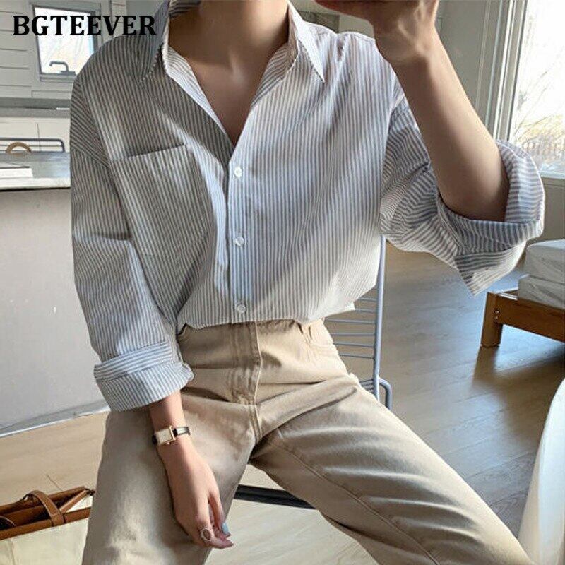 【新作】【送料無料】 BGTEEVERヴィンテージストライプレディースブラウスターンダウンカラー長袖ルーズシャツトップス2021春 ロング スプリング 春物 ビンテージ 12b164031955915