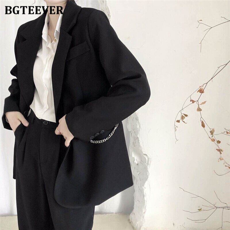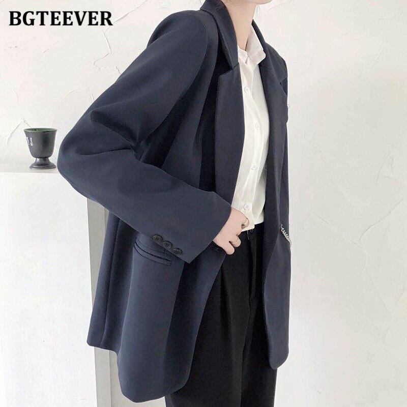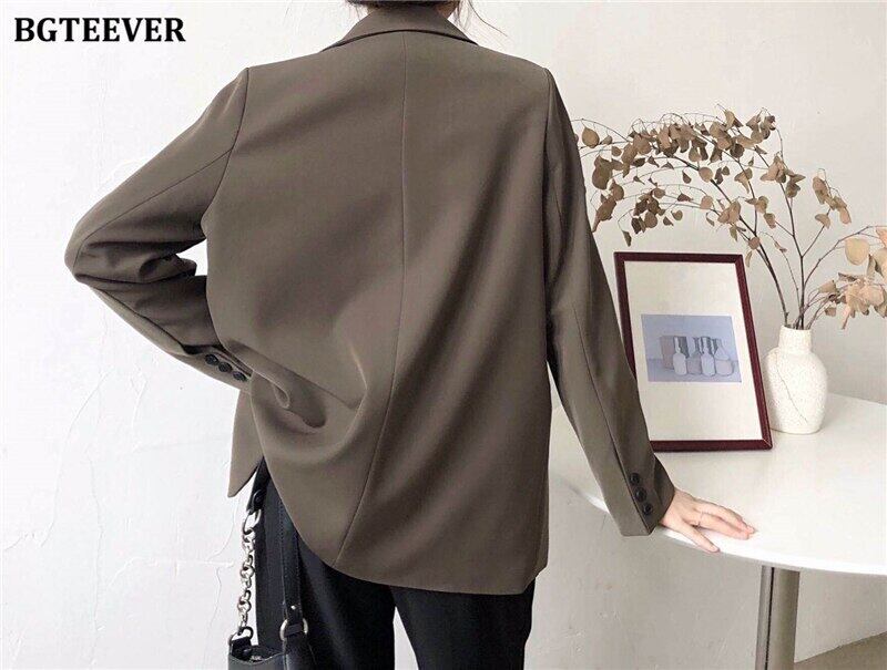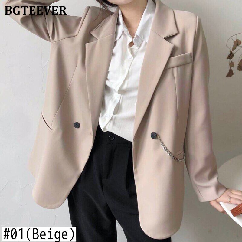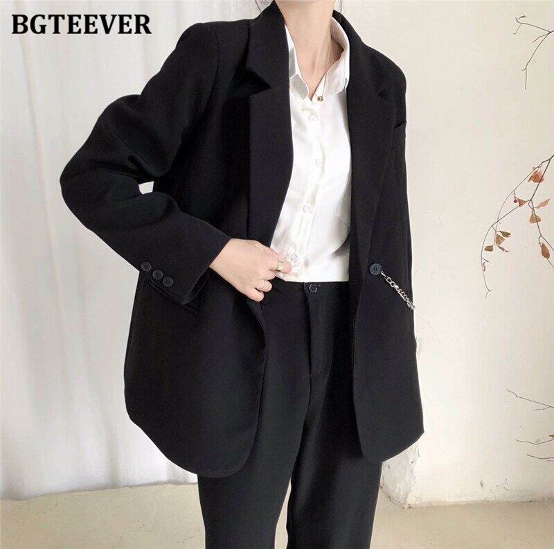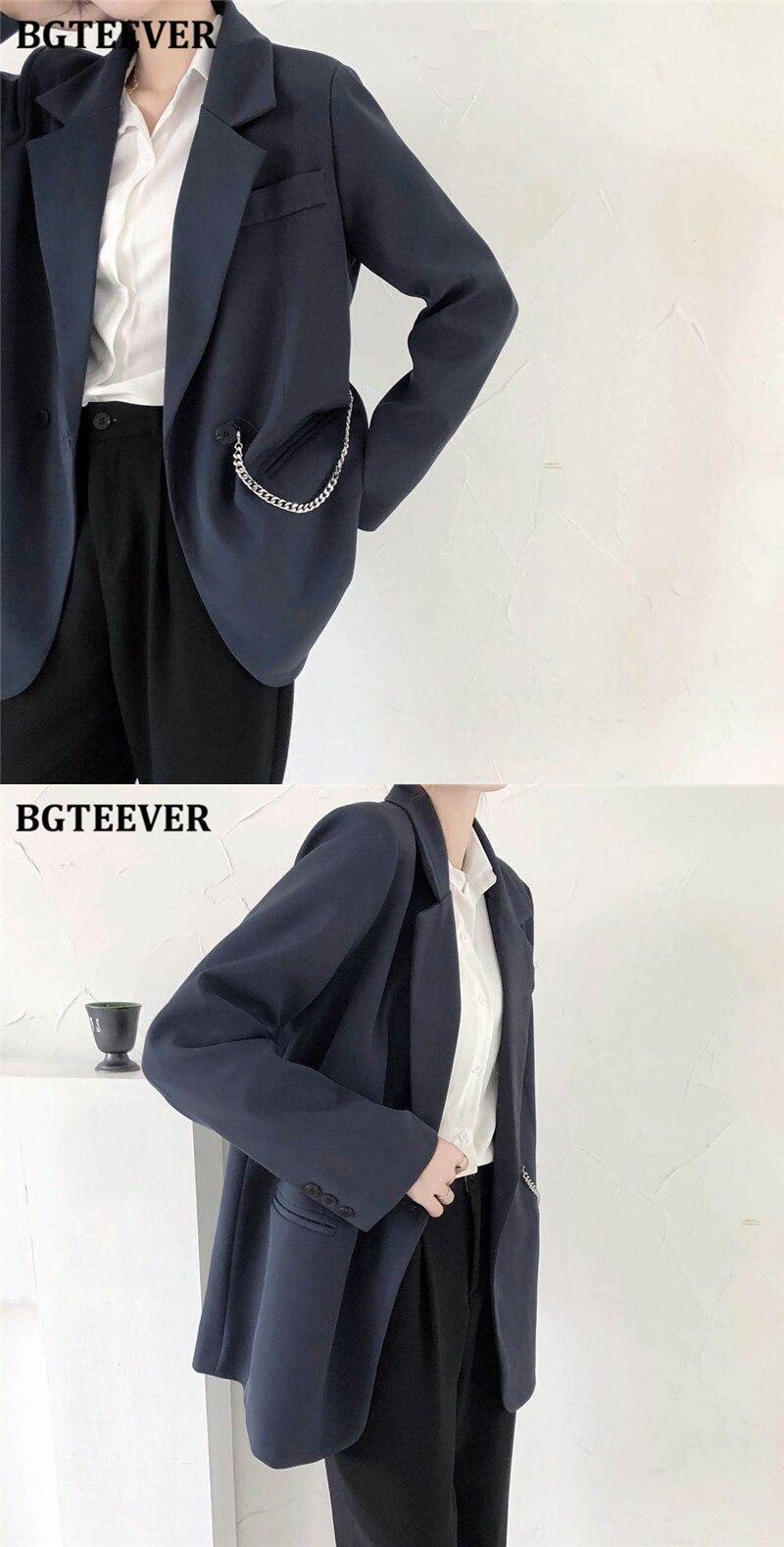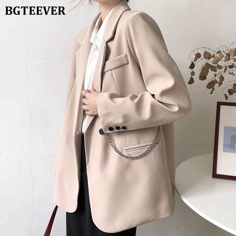 【新作】【送料無料】 BGTEEVERスタイリッシュなダブルブレストチェーンの女性ブレザーオフィスルーズソリッドスーツジャケット2021春の作業服ブレザー スプリング 春物 ソリッドカラー 会社 学校 通勤や通学にも 12b19658050960
