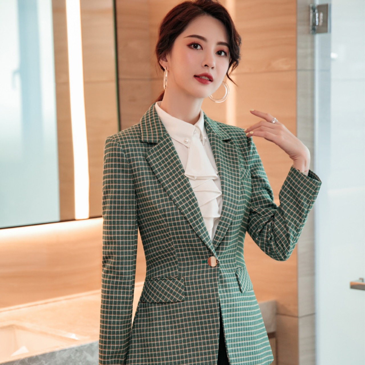 色:グレーのグリッドスーツ+パンツ+シャツ,グリーングリッドスーツ+パンツ+シャツ,アプリコットスーツ+パンツ+シャツ,グレーのグリッドスーツ+パンツ,グリーングリッドスーツ+パンツ,アプリコットスーツ+パンツ,グレーのスーツ,グリーングリッドスーツ,アプリコットスーツ