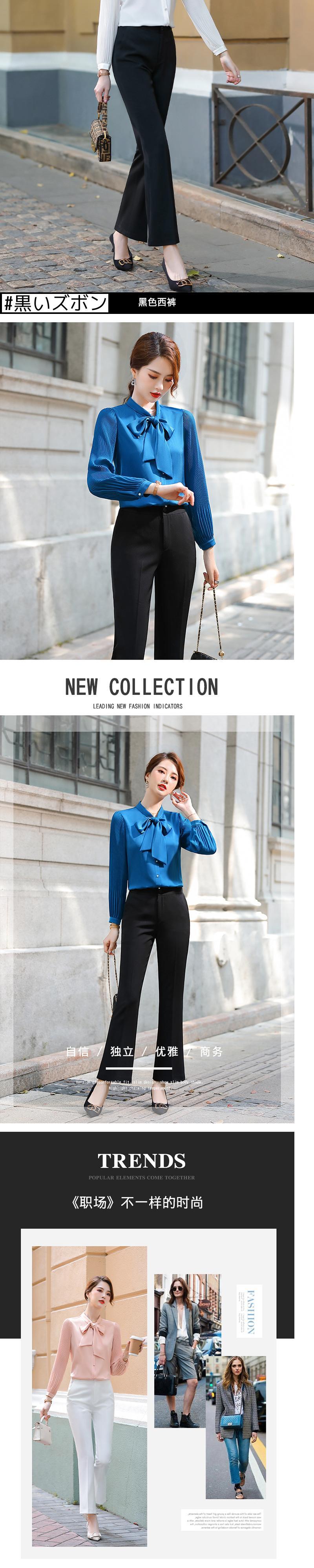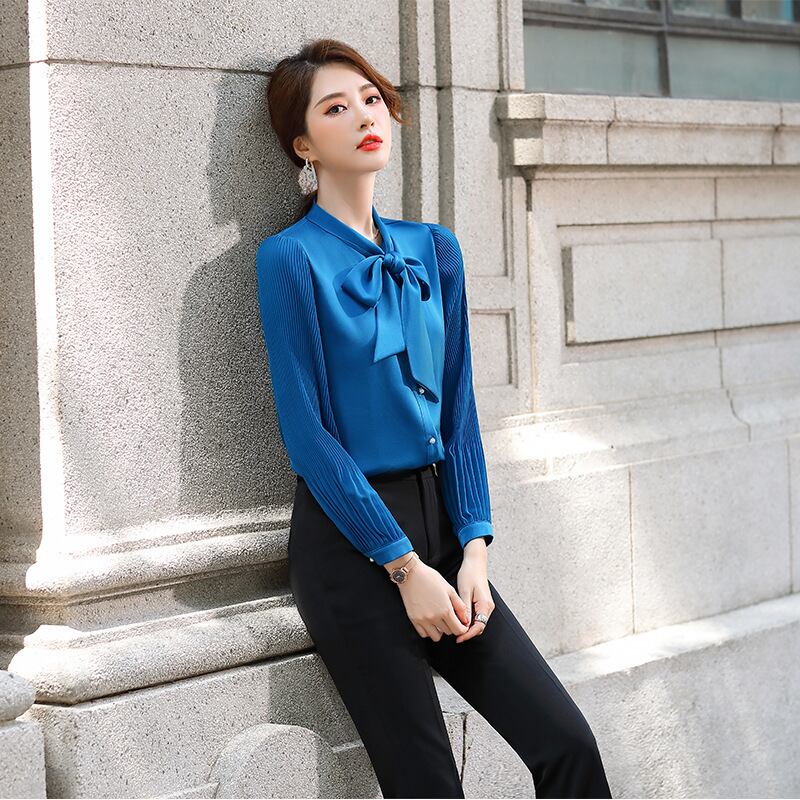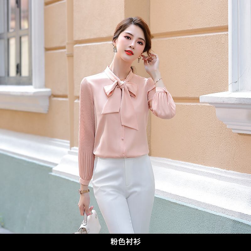 【新作】【送料無料】 白いシフォンシャツの女性の長袖ファッション西洋気質リボン蝶ネクタイビジネスウェア白いシャツシルクトップ-アリババ ロング ホワイト 12b362621951582