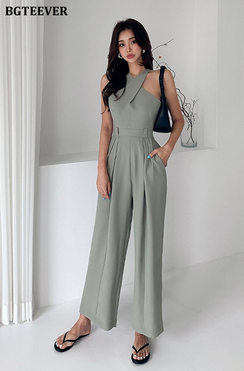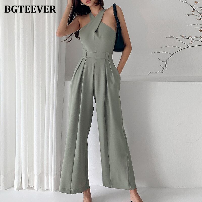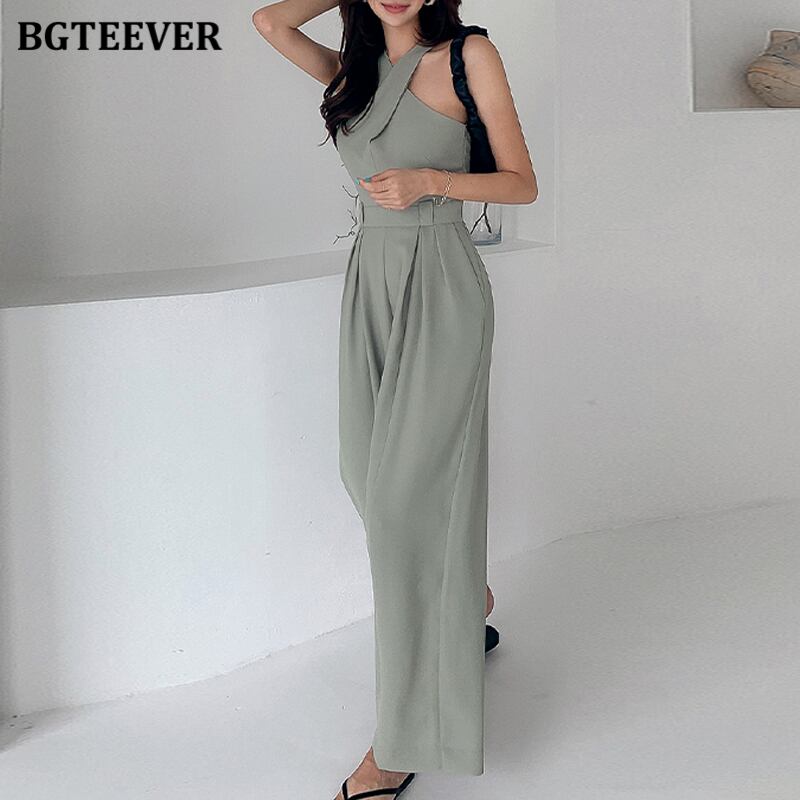 【新作】【送料無料】 BGTEEVERシックな春夏ノースリーブ女性ロンパース2021スリムウエストストレートレッグジャンプスーツロングプレイスーツ スプリング 春物 サマー 夏物 12b167521356468