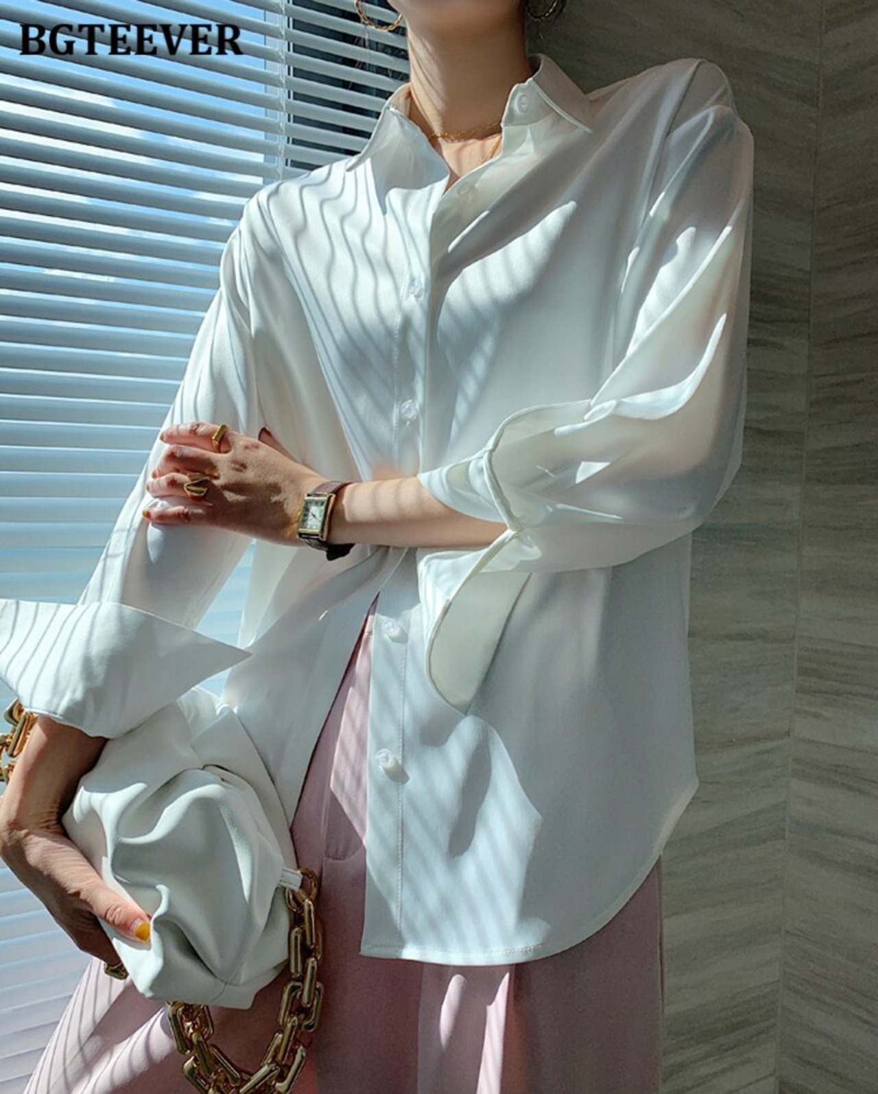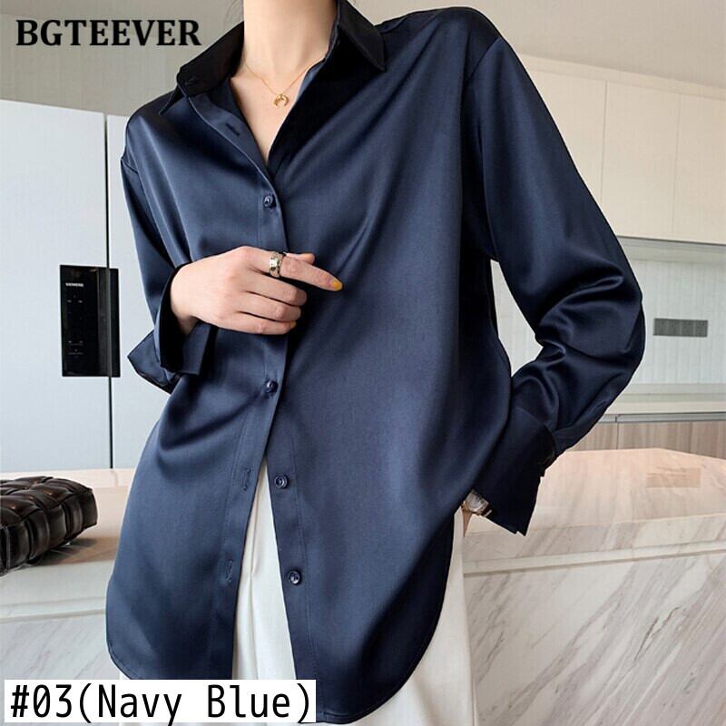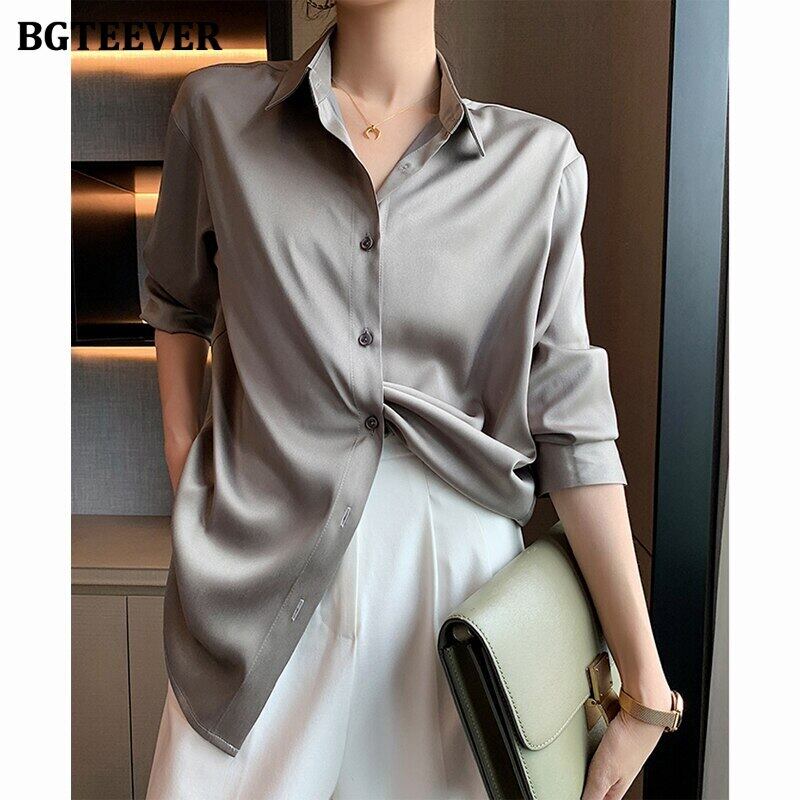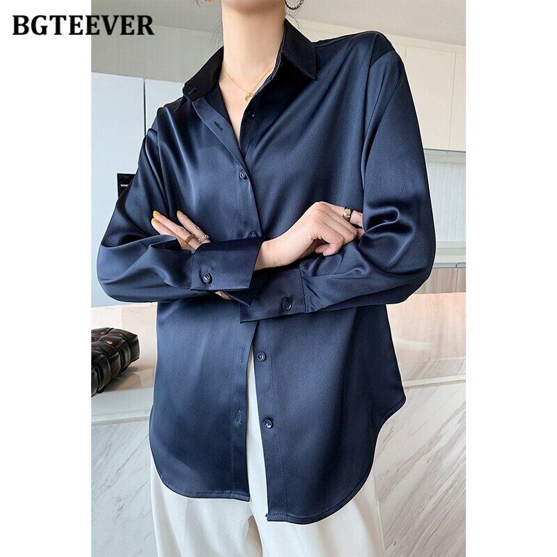 【新作】【送料無料】 BBTEEVERシックな女性のサテンシャツ2021年春の長袖ソリッドシングルブレストブラウストップス作業服 ロング スプリング 春物 ソリッドカラー 12b135258358867