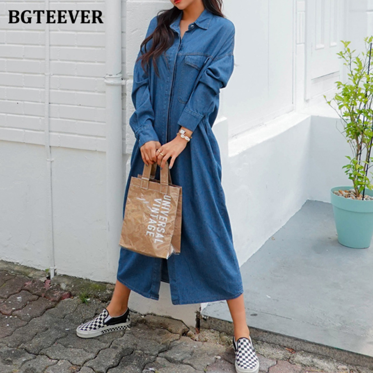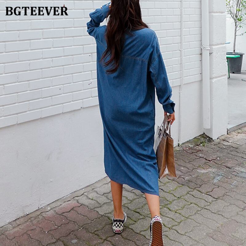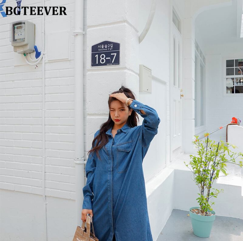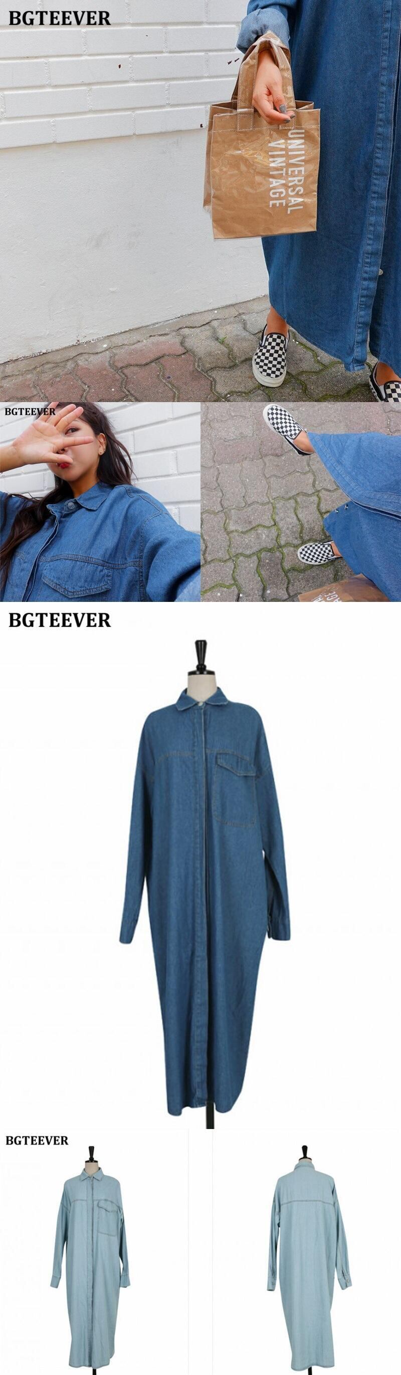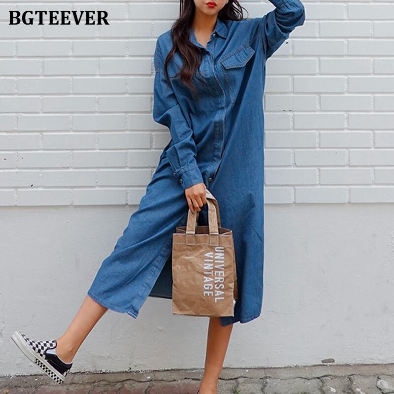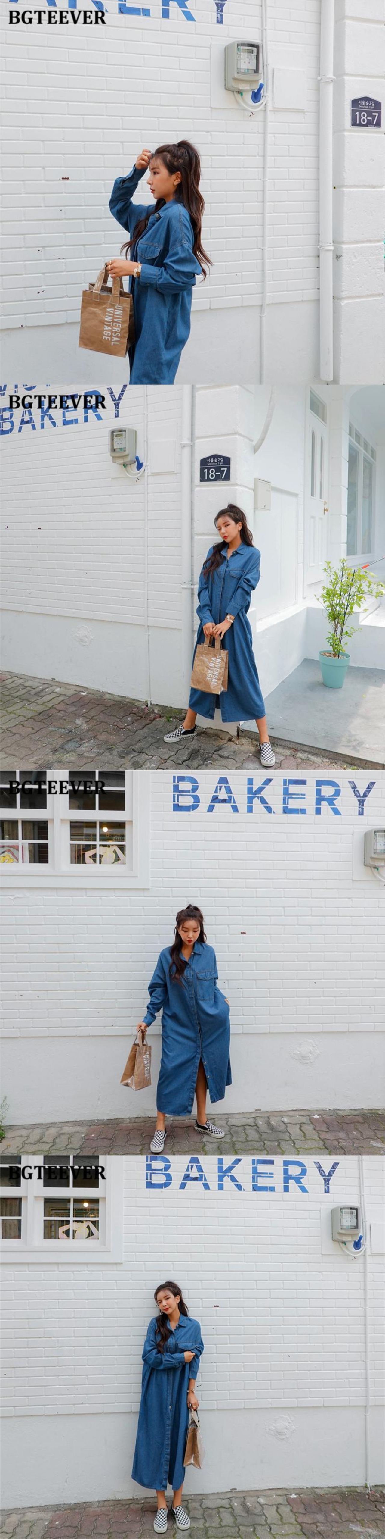 【新作】【送料無料】 BGTEEVERシックなヴィンテージストレートロングデニムドレス女性フルスリーブルーズジーンズドレス春 スプリング 春物 ビンテージ 12b186696339098