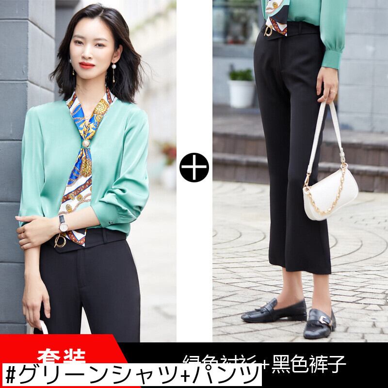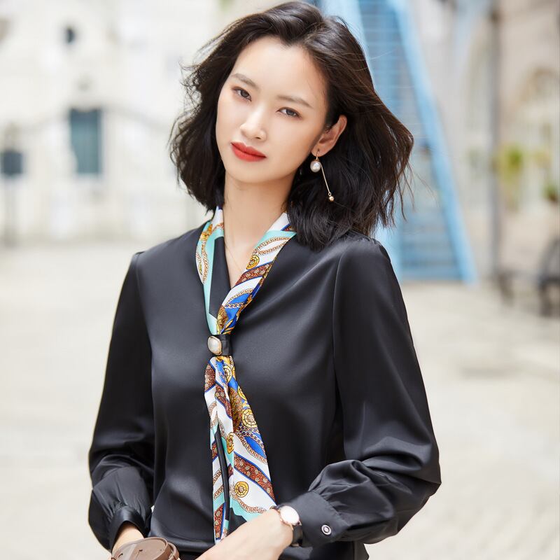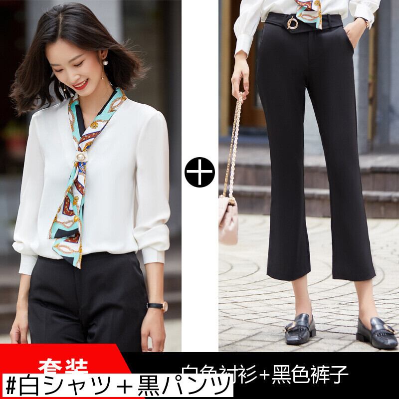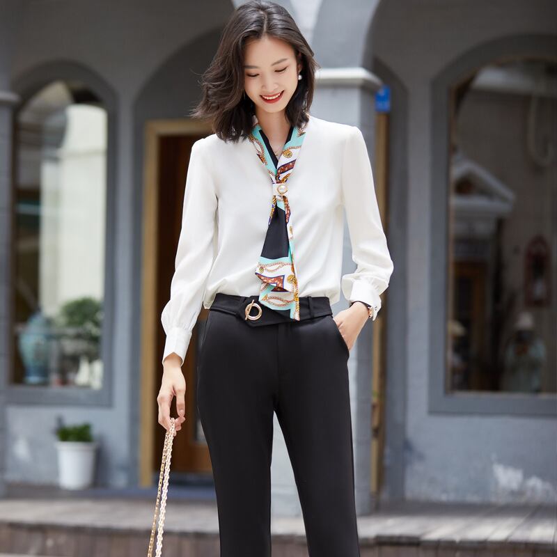 【新作】【送料無料】 カラフルなストリーマーシャツの女性2021シーズンオールマッチVネックトップ気質ファッションホワイトカラー長袖プロオールマルウェア-アリババ ロング 12b3230398326