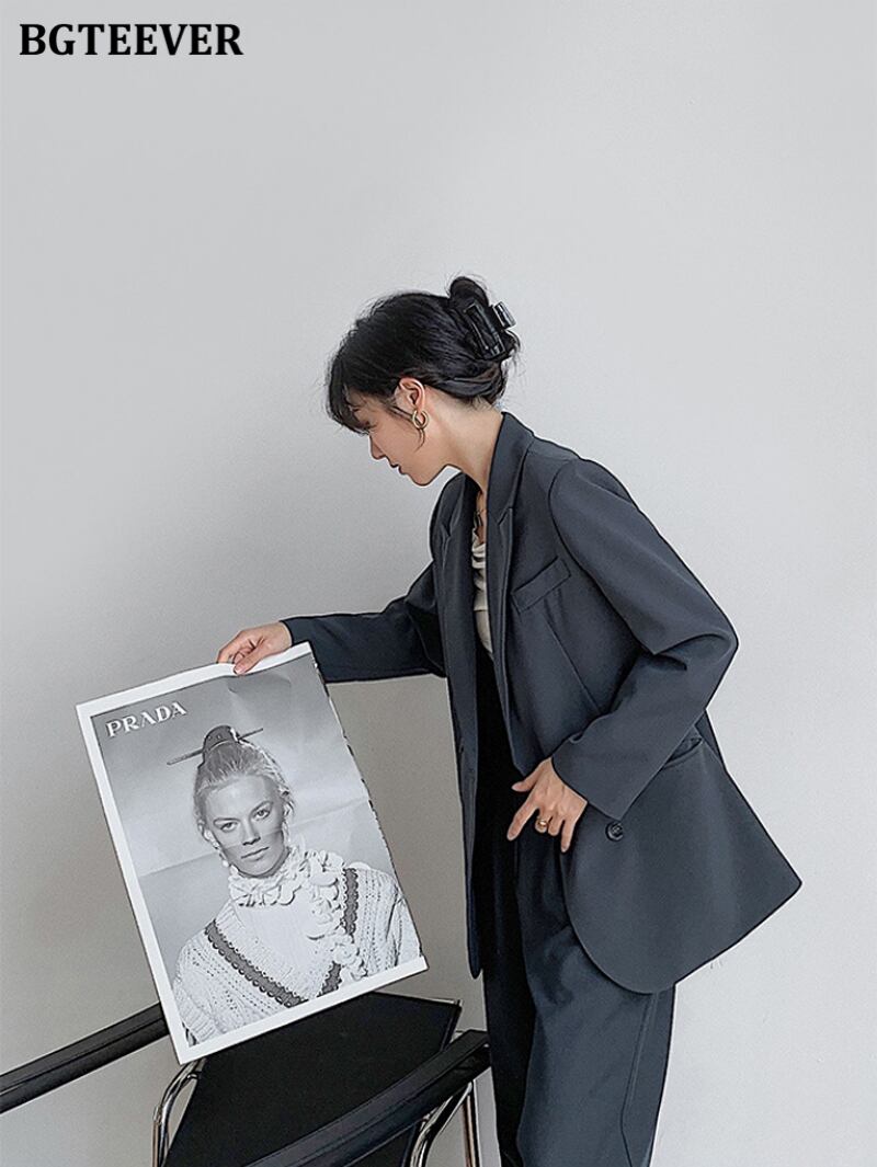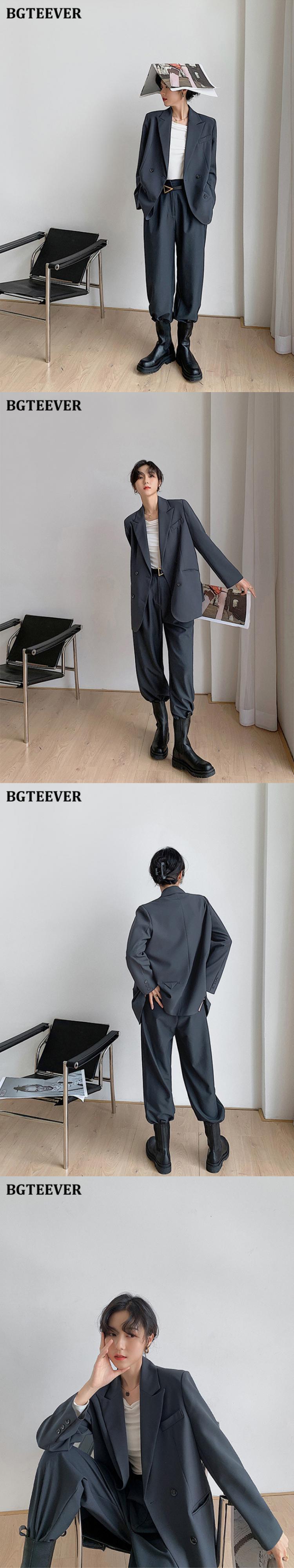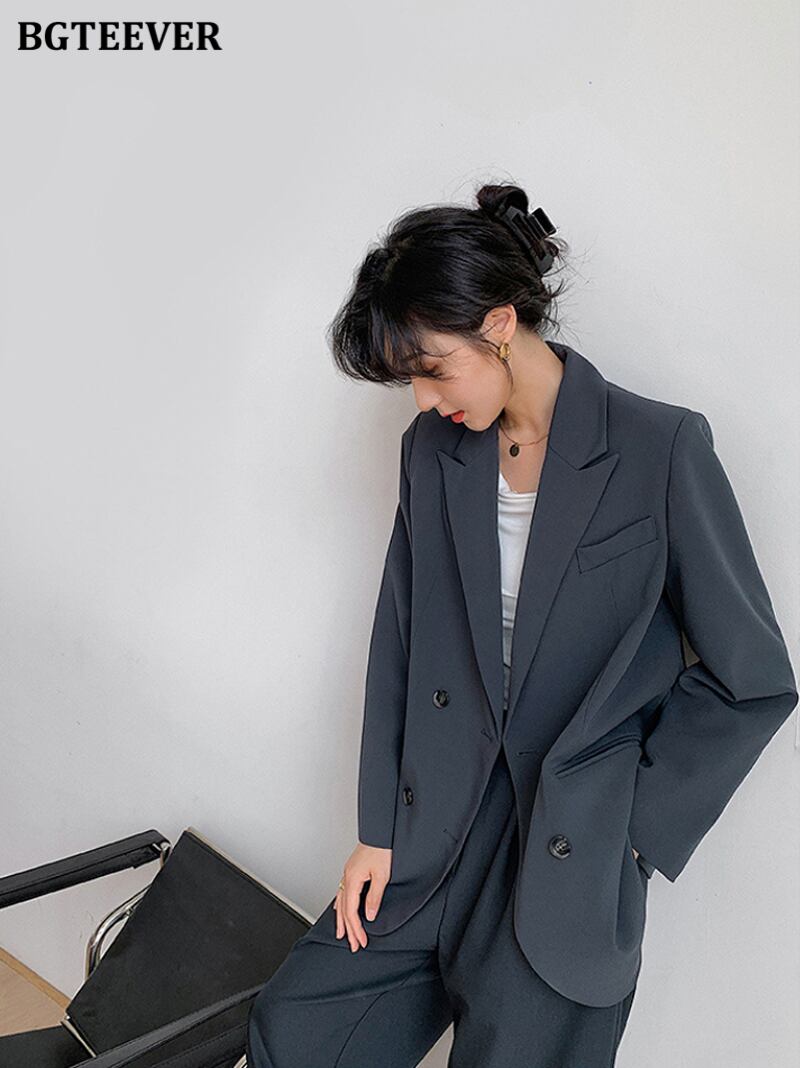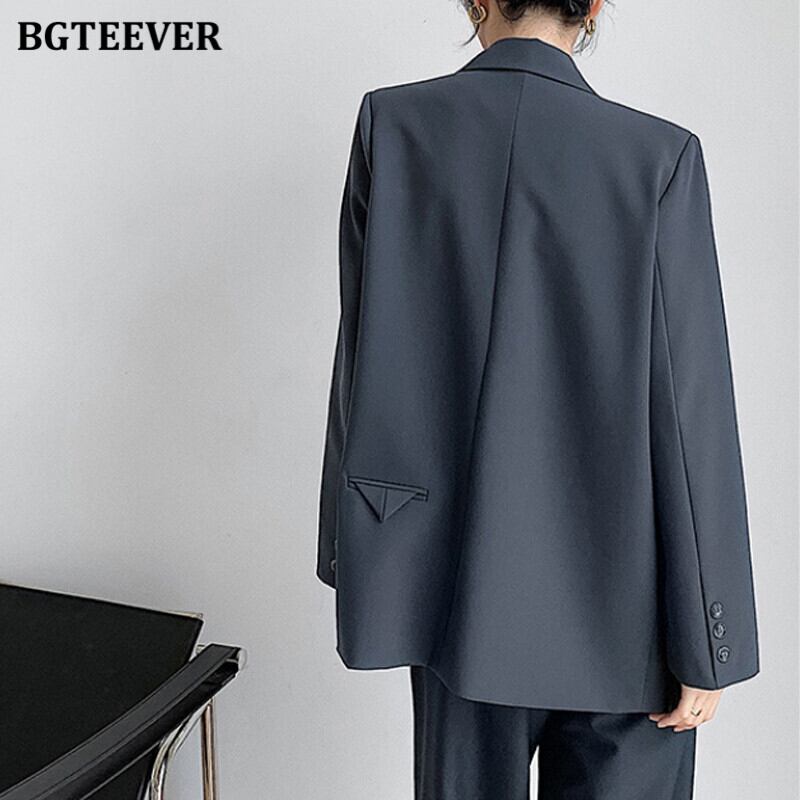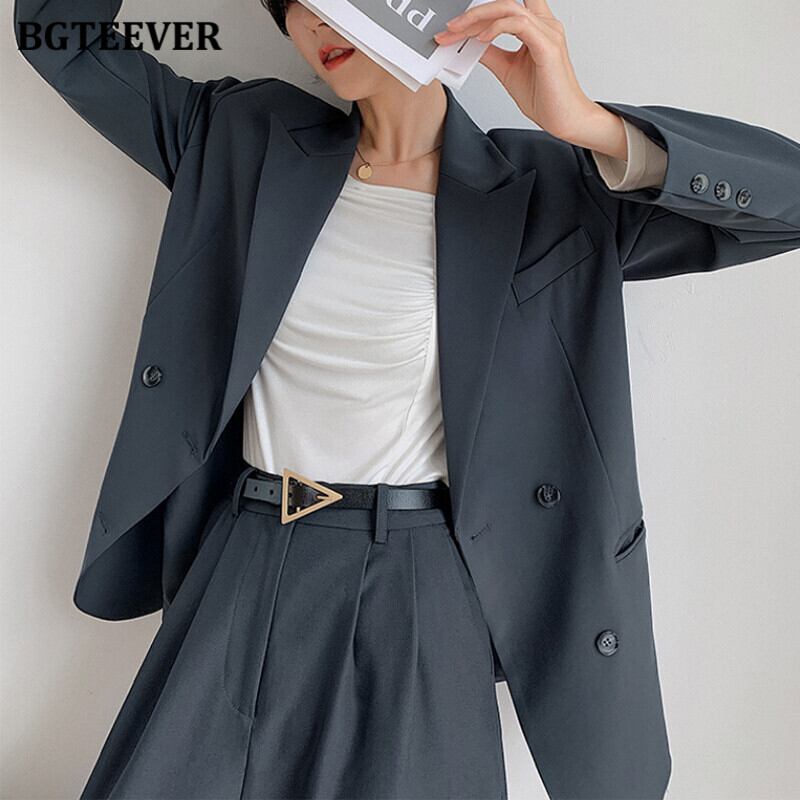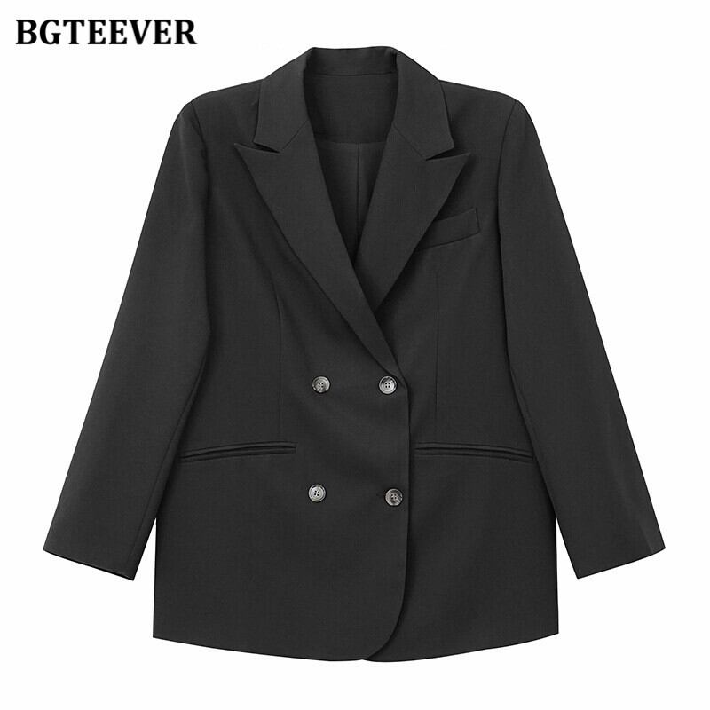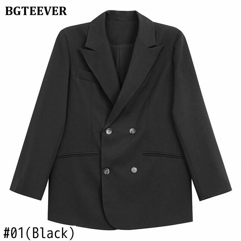 【新作】【送料無料】 BGTEEVER春のシックなフルスリーブの女性ブレイザー2021ノッチカラールーズスーツジャケットダブルブレストアウター スプリング 春物 12b145331311399