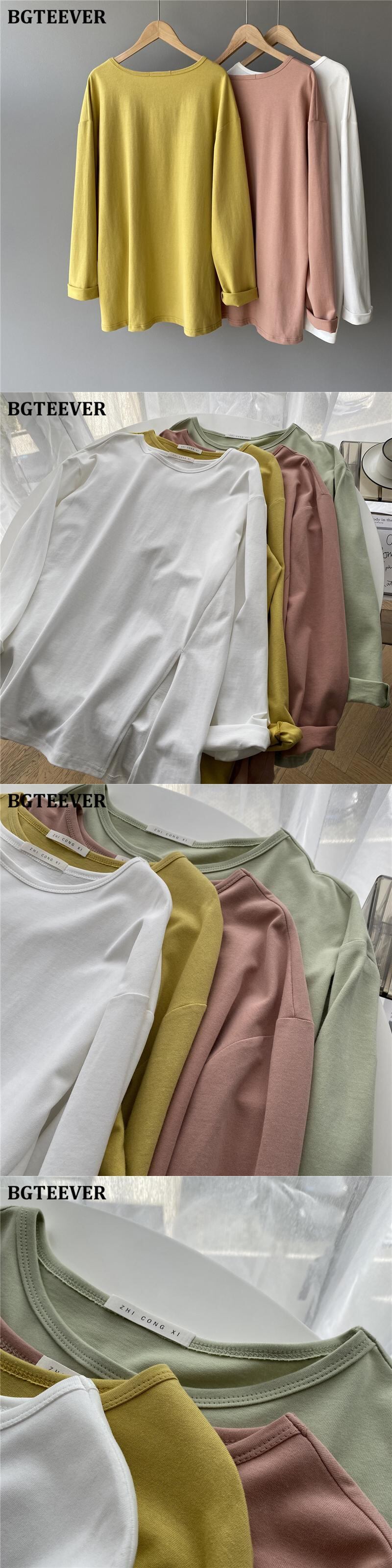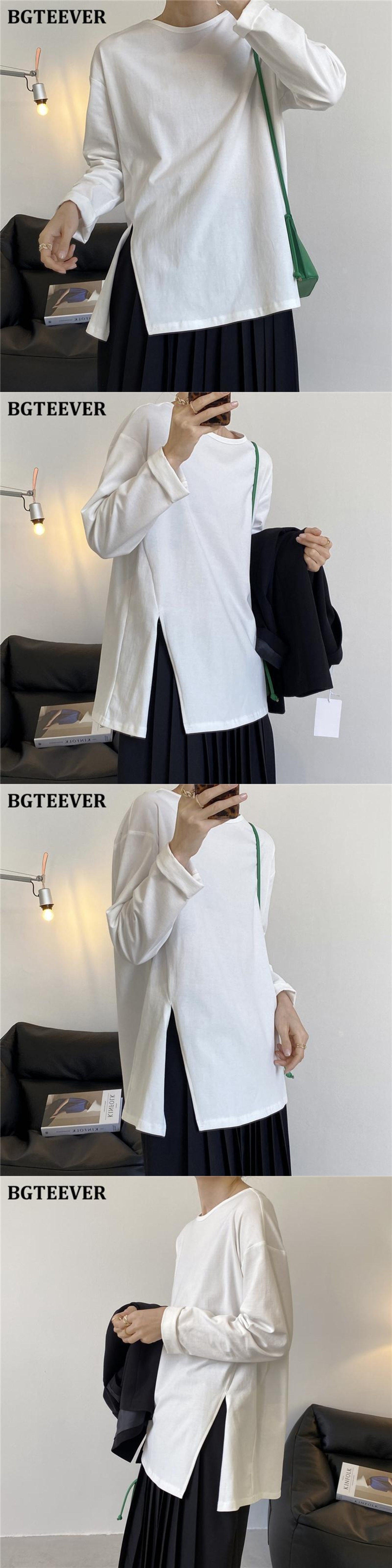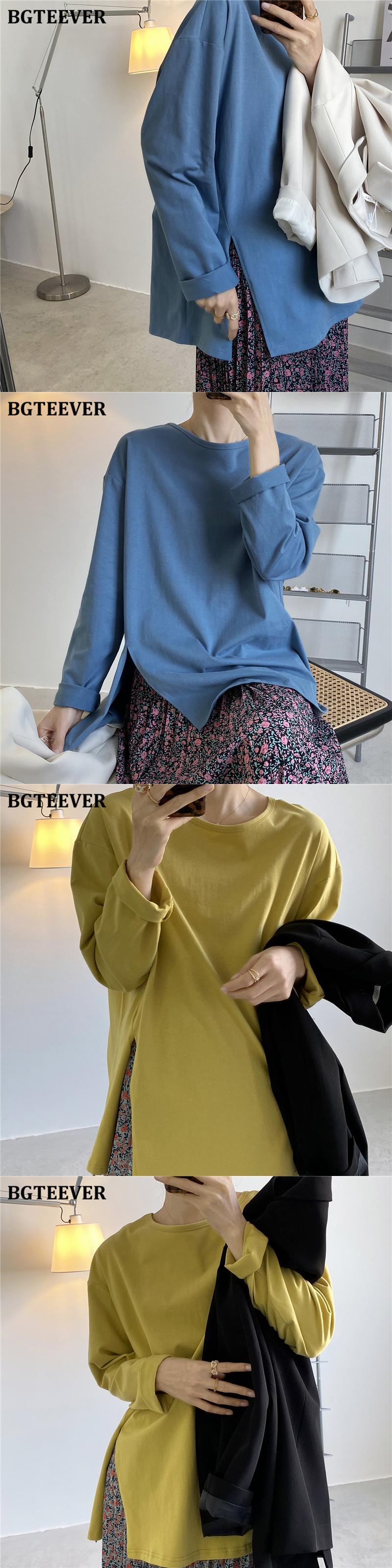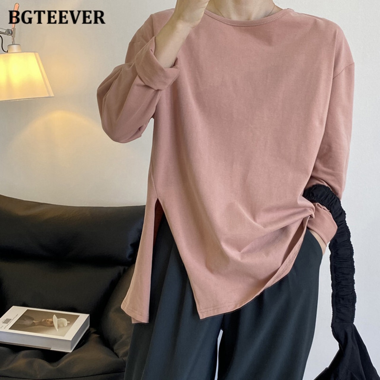 【新作】【送料無料】 BGTEEVERベーシックOネックルーズソリッドトップスサイドスプリット長袖Tシャツ2021春夏Tシャツ ロング スプリング 春物 サマー 夏物 ソリッドカラー 12b18809275490