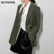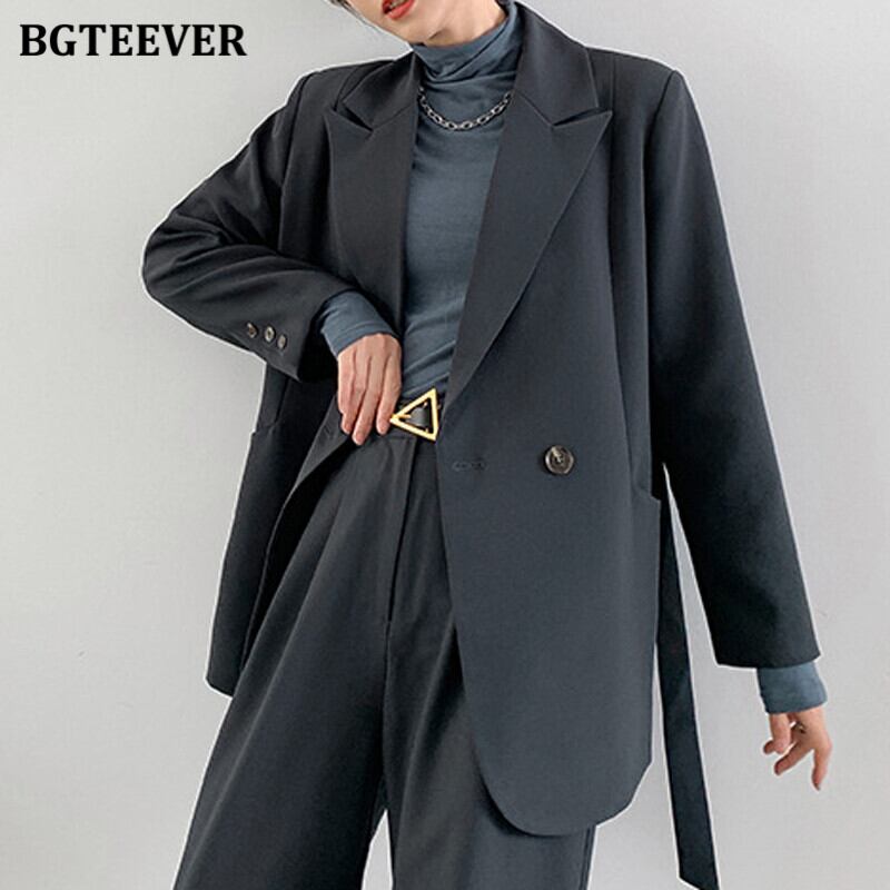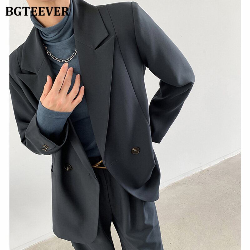 【新作】【送料無料】 BGTEEVERシックなノッチ付きカラーレディースソリッドスーツジャケットオフィスルーズダブルブレストサッシブレザーアウター ソリッドカラー 会社 学校 通勤や通学にも 12b124111508648