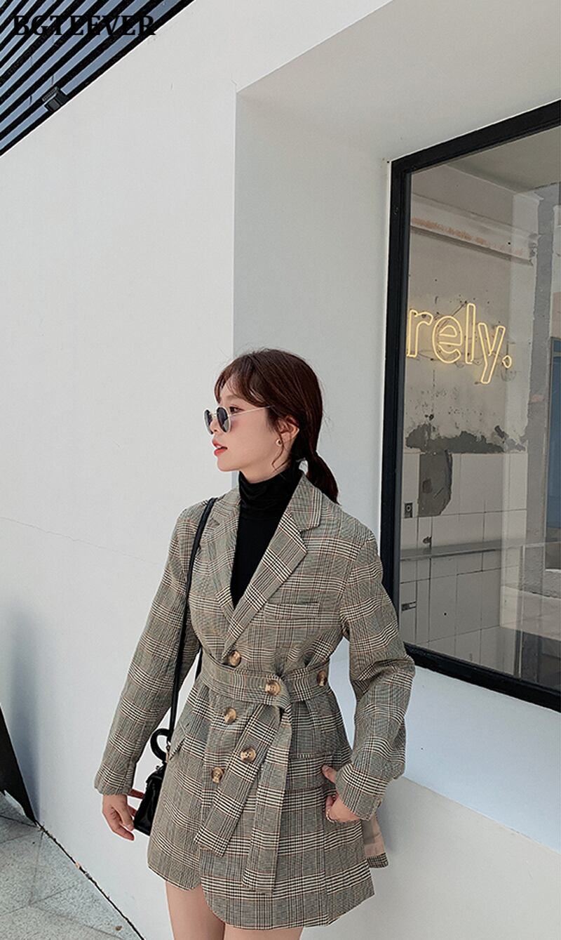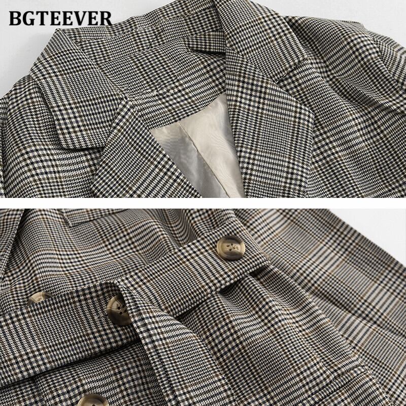 【新作】【送料無料】 BGTEEVER春シングルブレストレディースチェック柄ブレザージャケットノッチカラールーズベルトスーツジャケット2021アウター スプリング 春物 ハーネス 12b148673613726