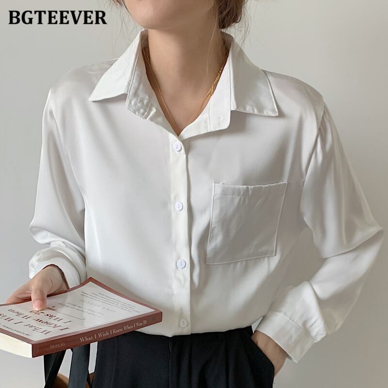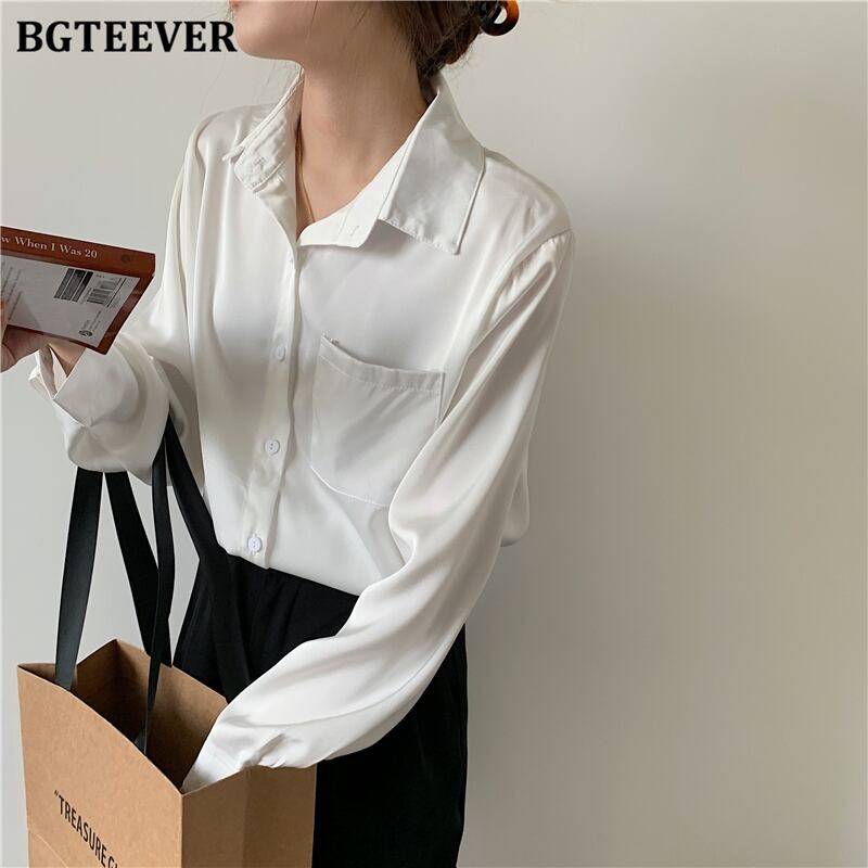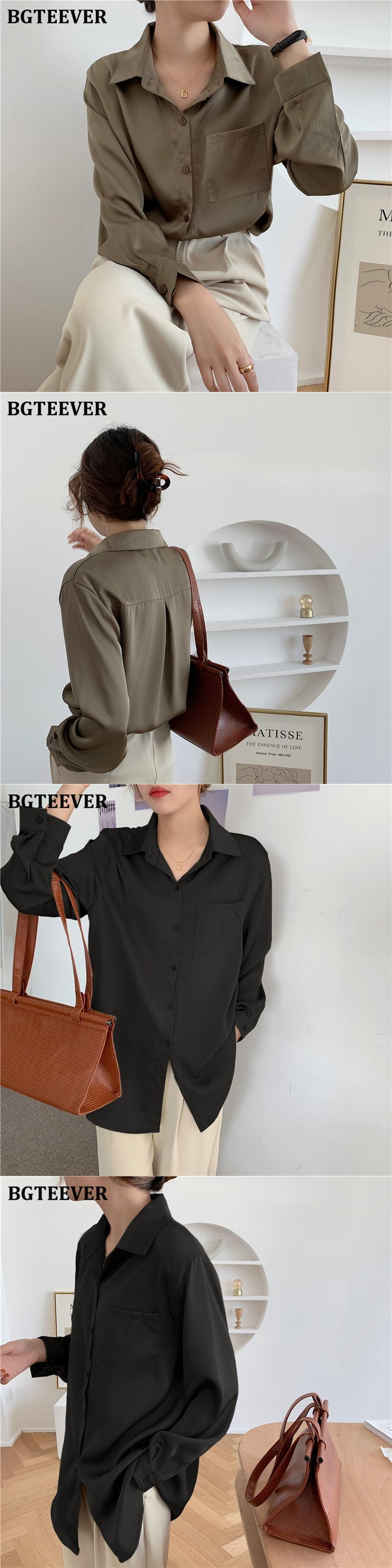 【新作】【送料無料】 レディースソリッドシャツ長袖ポケットルーズワークウェアブラウストップス春 ロング スプリング 春物 ソリッドカラー 12b114789921483